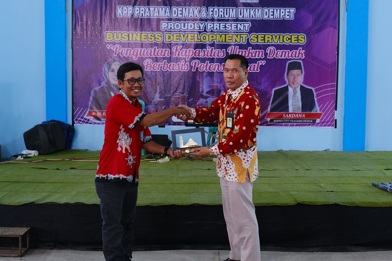 Kantor Pelayanan Pajak (KPP) Pratama Demak bekerja sama dengan Forum Usaha Mikro, Kecil dan Menengah (UMKM) Kota Wali cabang Dempet dan Dinas Perdagangan, Koperasi, dan UKM (Dindagkop) Kabupaten Demak menyelenggarakan kegiatan Business Development Services di Kantor Kecamatan Dempet, Kab. Demak (Selasa, 15/10).