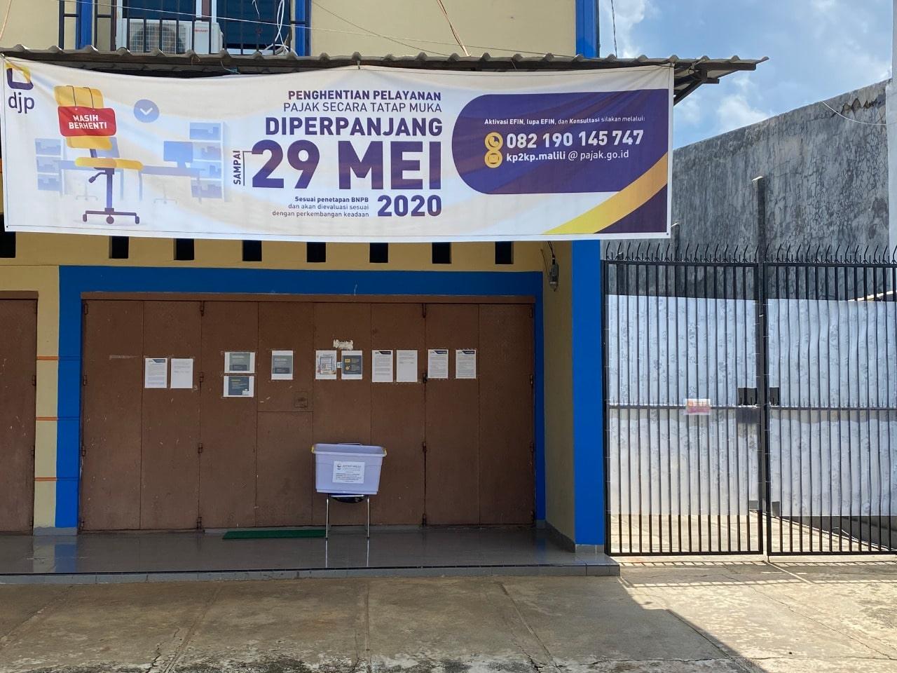 Kantor Pelayanan, Penyuluhan, dan Konsultasi Perpajakan (KP2KP) Malili turut mendukung upaya pemerintah untuk mencegah penyebaran wabah Covid-19 dengan meniadakan sementara pelayanan perpajakan secara tatap muka di wilayah Kabupaten Luwu Timur (Rabu, 20/5). Penutupan sementara pelayanan tatap muka ini juga telah dilakukan secara serentak oleh unit kerja DJP di seluruh Indonesia hingga 14 Juni 2020.