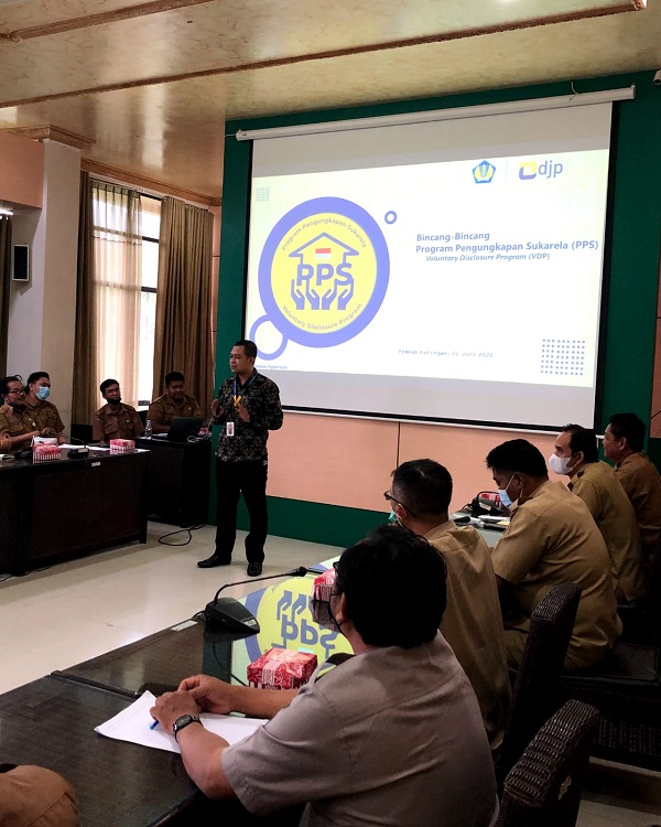 Pemerintah Kabupaten Katingan bekerja sama dengan Kantor Pelayanan Pajak (KPP) Pratama Sampit menggelar acara Bincang-Bincang Program Pengungkapan Sukarela (PPS) yang dihadiri oleh perwakilan Satuan Kerja Pemerintah Daerah (SKPD) di lingkungan Pemerintah Kabupaten Katingan dan DPRD Kabupaten Katingan bertempat di Kantor Bupati Kabupaten Katingan, Kalimantan Tengah (Selasa, 21/6).