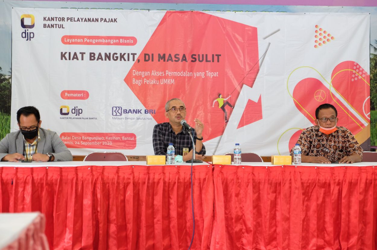 Kantor Pelayanan Pajak (KPP) Pratama Bantul bersama Bank Rakyat Indonesia (BRI) Cabang Bantul mengadakan Kegiatan Bussiness Development Service (BDS) yang diikuti oleh para pelaku UMKM di Desa Bangunjiwo, bertempat di Balai Desa Bangunjiwo (Kamis, 24/9).