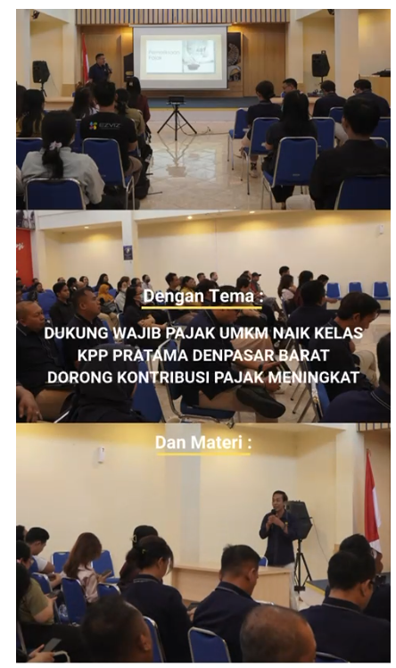 Sebanyak 32 wajib pajak hadir mengikuti edukasi bertema “Dukung Wajib Pajak UMKM Naik Kelas, KPP Pratama Denpasar Barat Dorong Kontribusi Pajak Meningkat” yang digelar Kantor Pelayanan Pajak (KPP) Pratama Denpasar Barat di Denpasar (Rabu, 20/8). Edukasi ini bertujuan untuk meningkatkan pemahaman perpajakan di kalangan UMKM yang terdaftar di KPP Pratama Denpasar Barat.