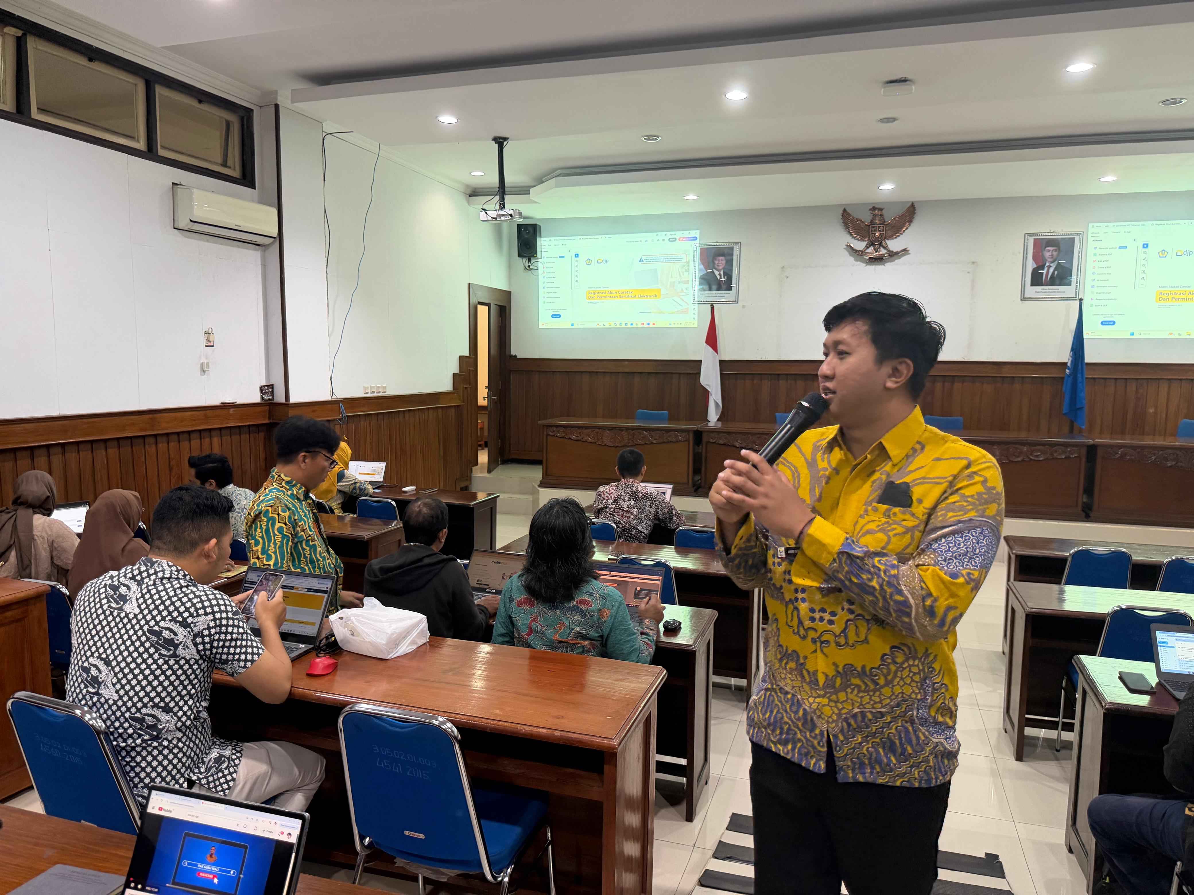 Ruang seminar Institut Seni Indonesia Surakarta (ISI) berubah menjadi “studio pajak” sosialisasi pelaporan Surat Pemberitahuan (SPT) Tahunan. Kantor Pelayanan Pajak (KPP) Pratama Surakarta, diwakili oleh penyuluh pajak, Andre Setiawan, hadir memberikan edukasi salah satu kewajiban perpajakan rutin tahunan itu di Kota Surakarta (Jumat, 20/2).