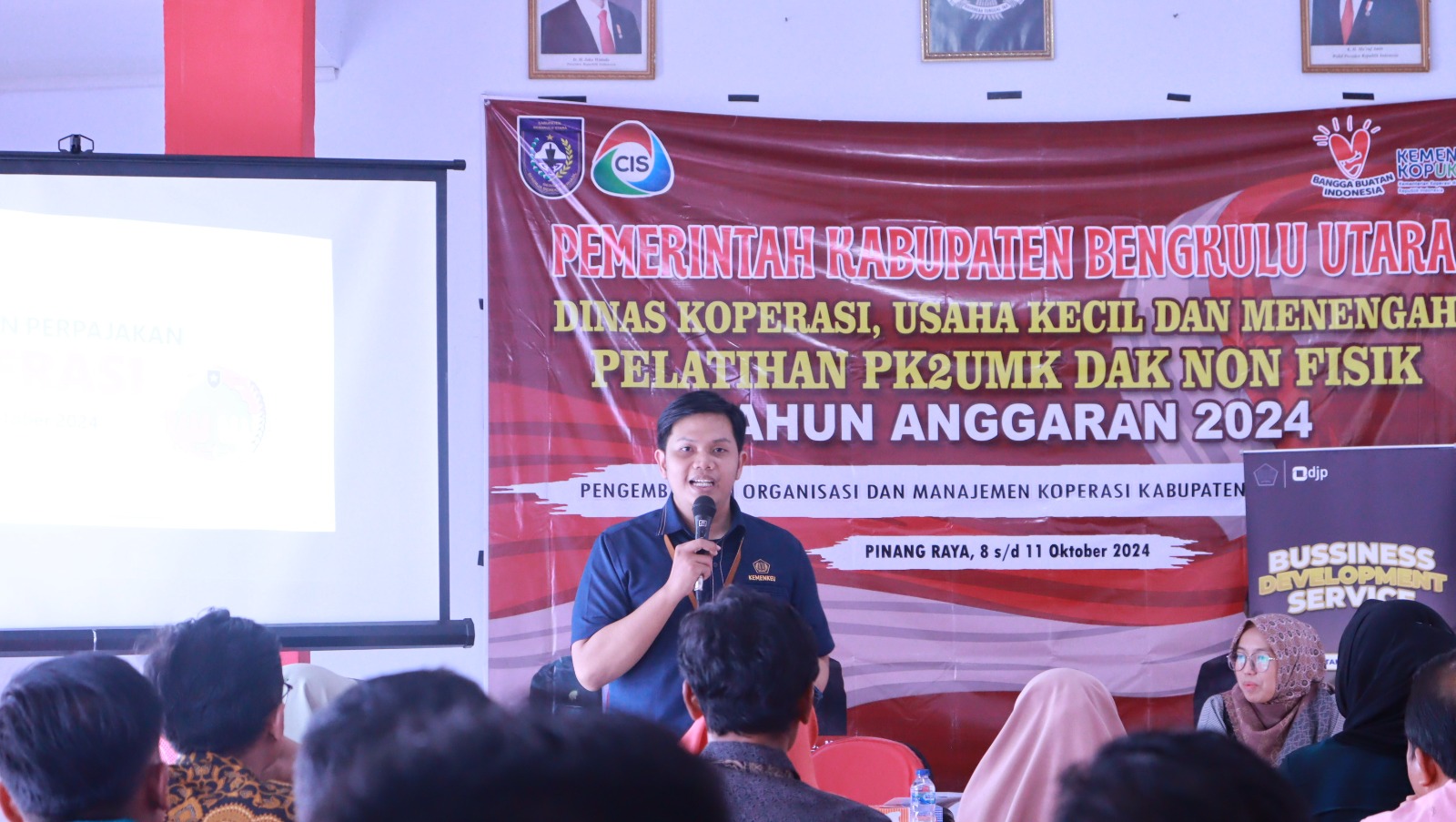 Kantor Pajak Bengkulu Satu menjadi narasumber dalam kegiatan pelatihan keterampilan koperasi angkatan IV. Kegiatan diselenggarakan oleh Dinas Koperasi, Usaha Kecil, dan Menengah (Diskop UKM) Bengkulu Utara di gedung Pusat Layanan Usata Terpadu (PLUT) Desa Bukit Makmur, Kecamatan Pinang Raya, Kabupaten Bengkulu Utara (Rabu, 9/10).
