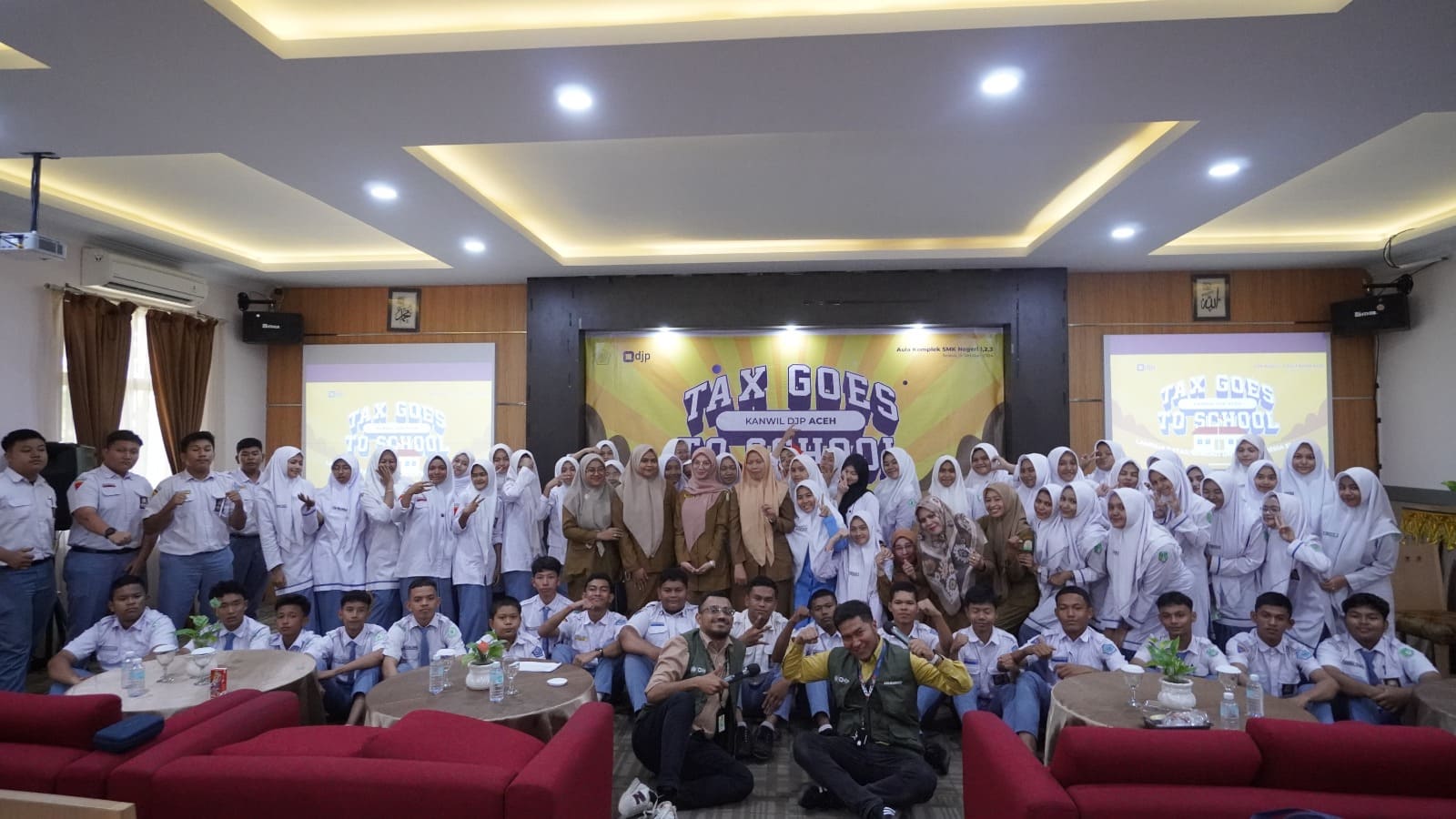 Kantor Wilayah Direktorat Jenderal Pajak (Kanwil DJP) Aceh melaksanakan kegiatan Tax Goes To School (TGTS) di Aula Komplek Sekolah Menengah Kejuruan (SMK) Negeri 1, SMK Negeri 2 dan SMK Negeri 3. Tiga sekolah tersebut berada pada satu komplek sekolah sehingga kegiatan tersebut diadakan di Aula Bersama Jalan Sultan Malikul Saleh, Lhong Raya, Kecamatan Banda Raya, Kota Banda Aceh (Selasa, 15/10).