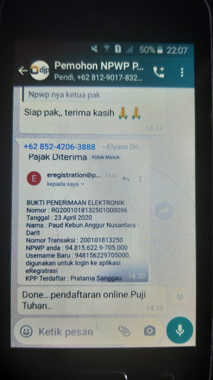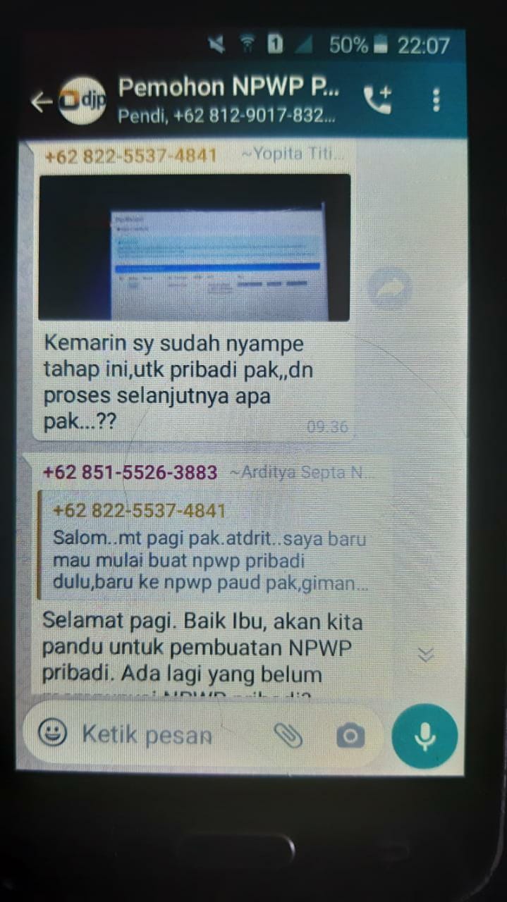 Kegiatan yang diikuti oleh 30 peserta ini tampak antusias dan semangat dalam mengikuti kelas pajak ini. Kegiatan edukasi ini diisi dengan pemaparan materi, bimbingan pembuatan NPWP PAUD dan sesi tanya jawab antara peserta dengan petugas. "Saya akhirnya bisa dan tau cara membuat NPWP PAUD saya walaupun KP2KP Ngabang tutup pelayanan tatap muka," ujar Kartono, salah satu peserta kegiatan melalui pesan Whatsapp.