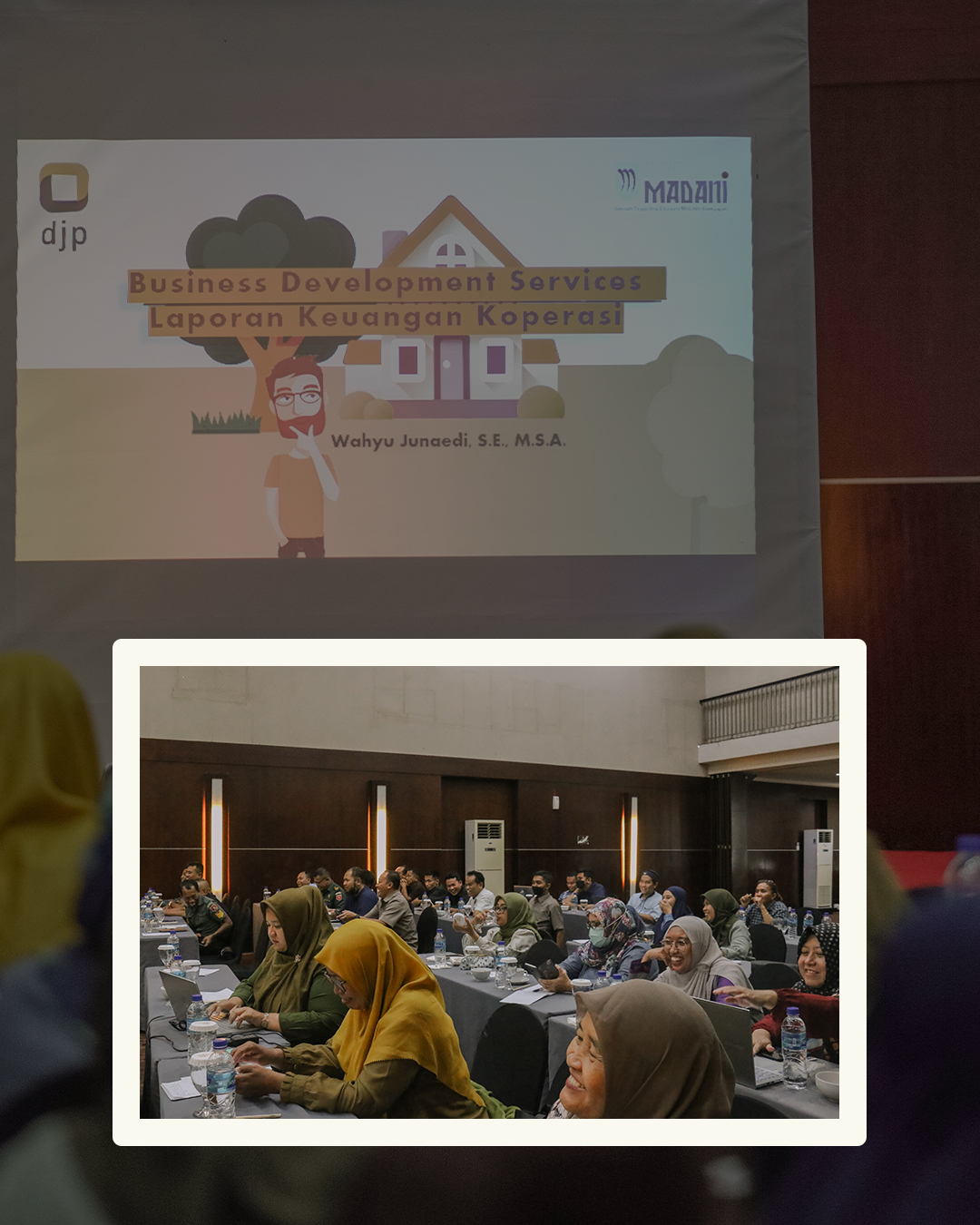 Materi dalam kegiatan Business Development Services ini, dibagi menjadi dua sesi. Materi pertama disampaikan oleh Wahyu Junaedi, S.E., M.S.A. dari Sekolah Tinggi Ilmu Ekonomi (STIE) Madani Balikpapan. Dalam sesi pertama ini, materi yang disampaikan terkait dengan ilmu dalam pembuatan laporan keuangan koperasi.