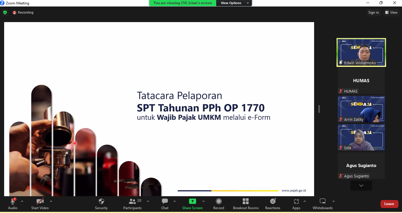 “Langkah Mudah Surat Pemberitahuan (SPT) Tahunan Orang Pribadi” menjadi tema yang dibahas dalam kelas pajak ini dengan menghadirkan Penyuluh Pajak Kanwil DJP Kaltimtara Edwin Widiatmoko sebagai narasumber.