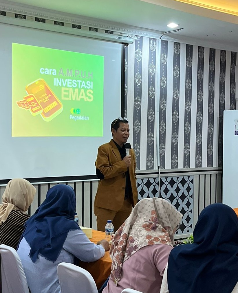 Narasumber dari PT. Pegadaian Area Semarang Panji Sholeh menyampaikan materi tentang Cara Ampuh Investasi Emas dan dilanjutkan materi terkait Penyaluran Pembiayaan UMi oleh Hendrawan Eko S.