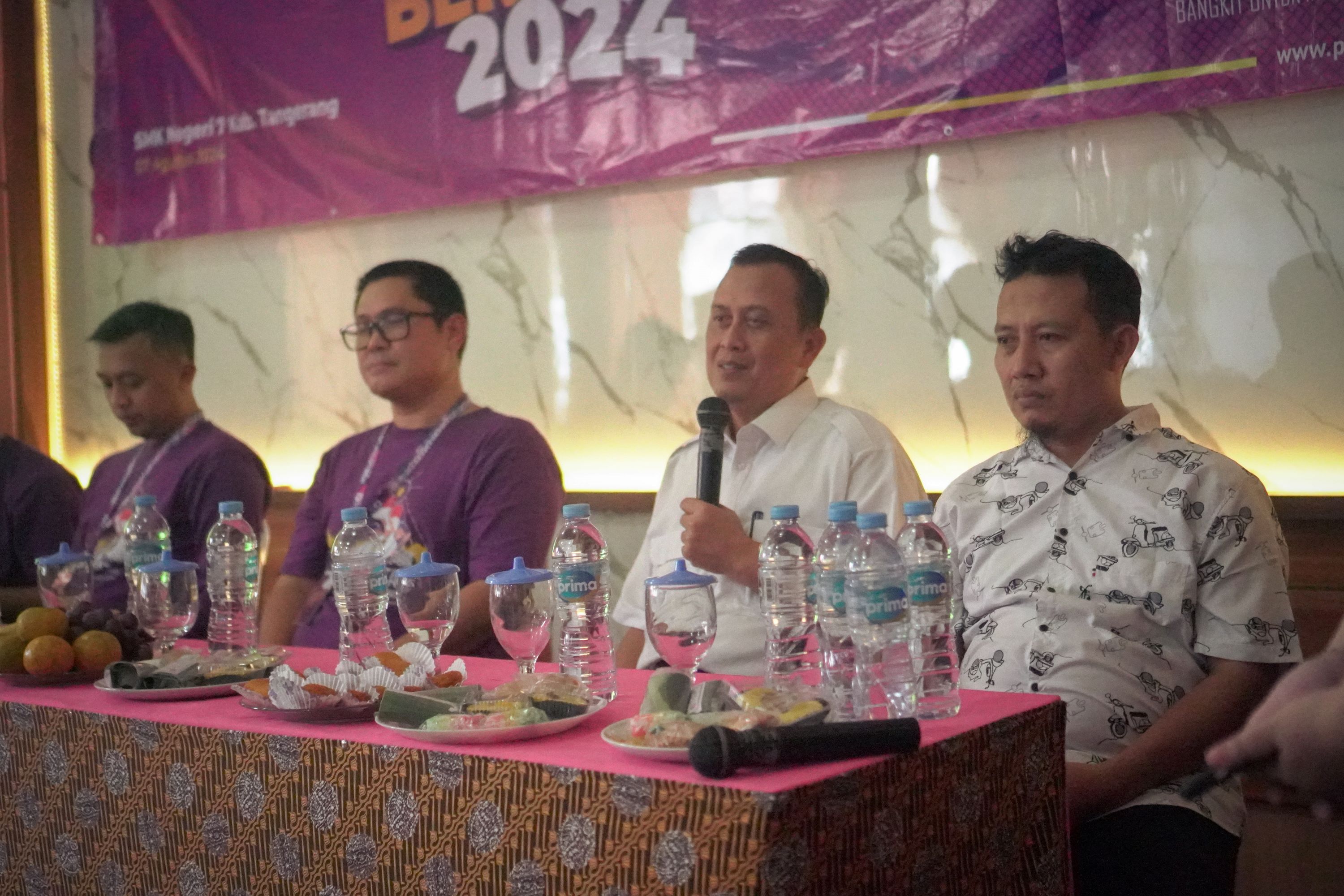 “Kami harap anak-anak dapat aktif dalam kegiatan (Pajak Bertutur) ini karena sekarang anak-anakku dapat belajar dari praktisi pajak,” ucap Kepala SMK Negeri 7 Kabupaten Tangerang Isman Hidayat kepada siswa kelas 11 SMK Negeri 7 Kabupaten Tangerang dalam sambutannya, Kabupaten Tangerang (Rabu, 7/8). Pajak Bertutur tahun 2024 merupakan kegiatan tahunan yang diselenggarakan untuk memperingati Hari Pajak.