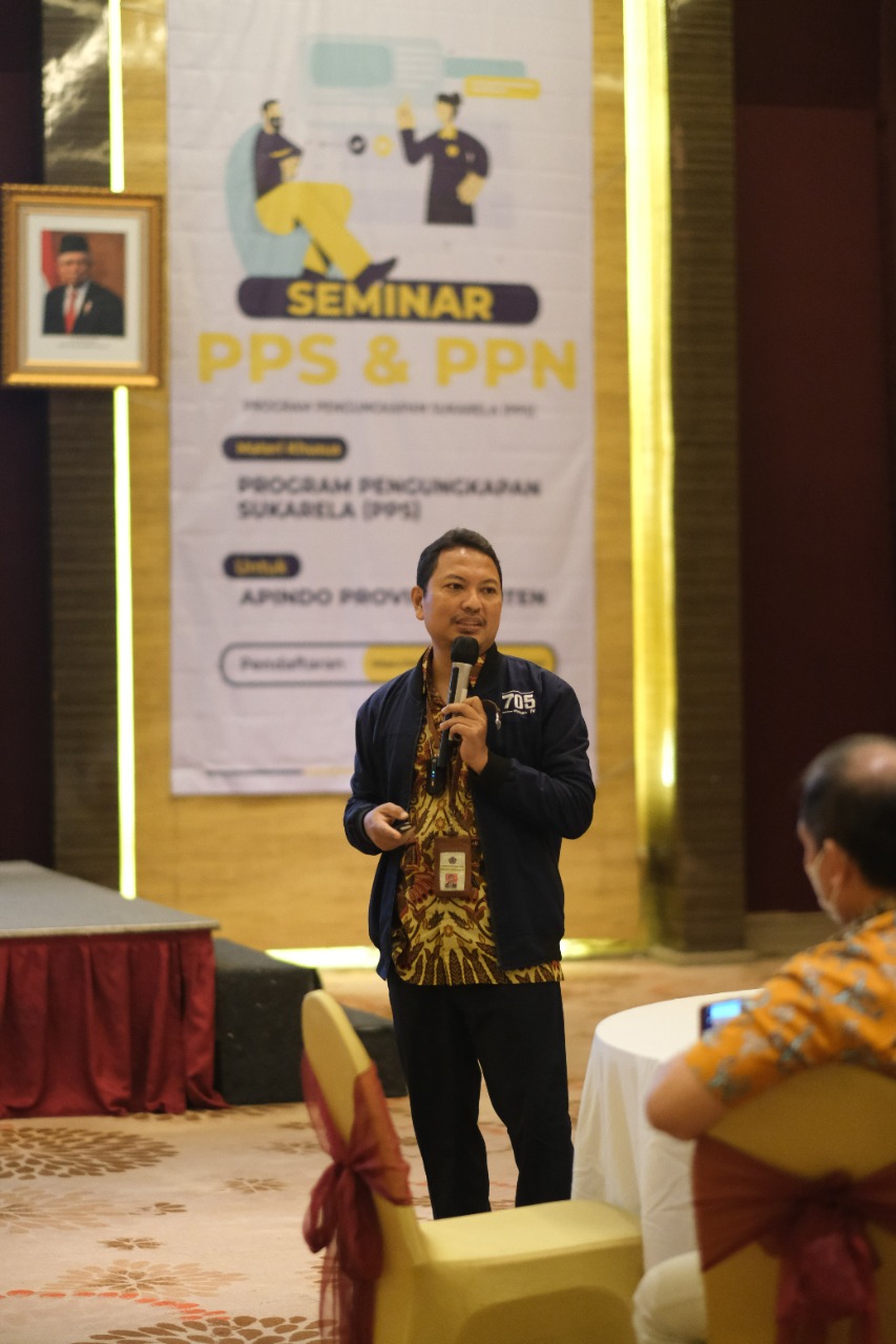 “Terima kasih kepada Apindo yang sudah banyak membantu dalam rangka mewujudkan masyarakat yang sadar dan peduli pajak,” ujar Kepala Kanwil DJP Banten Yoyok Satiotomo dalam sambutan sosialisasi PPS. Peserta mendapatkan materi tentang PPS yang disampaikan oleh Fungsional Penyuluh Ahli Muda Agus Puji Priyono dan Fungsional Penyuluh Ahli Pertama Muslih Anwari. Agus menjelaskan kepada peserta bahwa PPS merupakan pemberian kesempatan kepada wajib pajak untuk melaporkan/mengungkapkan kewajiban perpajakan yang belum dipenuhi secara sukarela melalui pembayaran PPh berdasarkan pengungkapan harta.