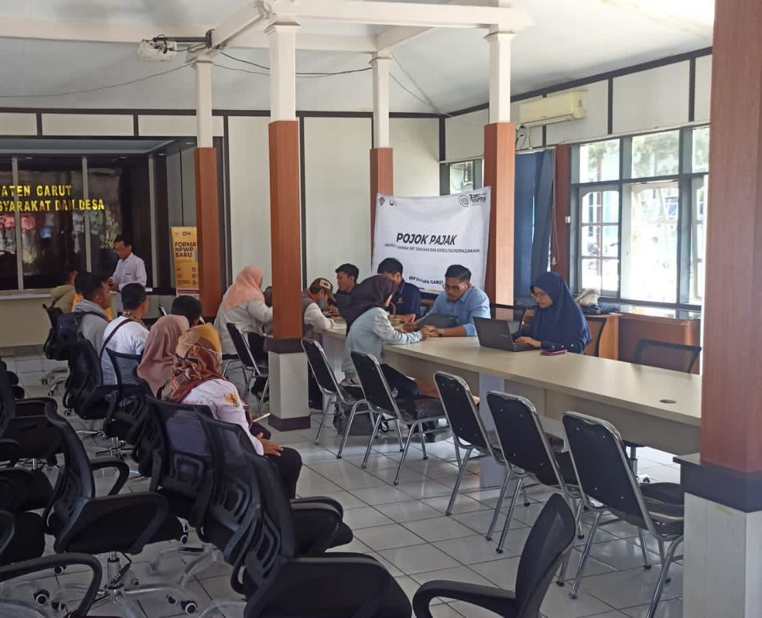 Kantor Pelayanan Pajak (KPP) Pratama Garut bekerja sama dengan Dinas Pemberdayaan Masyarakat dan Desa (DPMD) membuka pojok pajak di Aula DPMD di Jalan Otista No.176, Kelurahan Pasawahan, Kecamatan Tarogong Kaler, Kabupaten Garut (Kamis, 24/8).