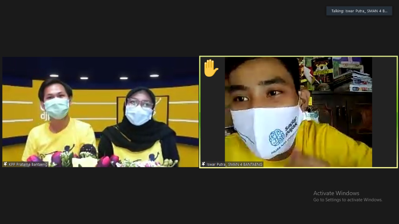 Kantor Pelayanan Pajak (KPP) Pratama Bantaeng melaksanakan kegiatan Pajak Bertutur (Patur) secara daring yang dikuti oleh siswa-siswi dari SMA Negeri 4 Bantaeng, Kabupaten Bantaeng (Rabu, 28/5).