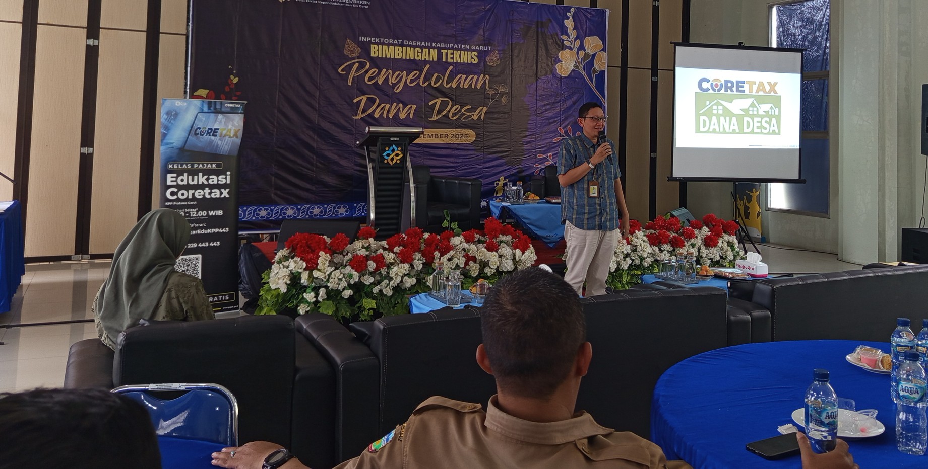 Kantor Pelayanan Pajak (KPP) Pratama Garut memberikan edukasi perpajakan terkait aspek pajak dana desa di acara Bimbingan Teknis (Bimtek) Pengelolaan Dana Desa yang diselenggarakan Pemerintah Daerah Kabupaten Garut di Aula UPT Balai Diklat Kependudukan dan Keluarga Berencana, Garut (Kamis, 4/11).