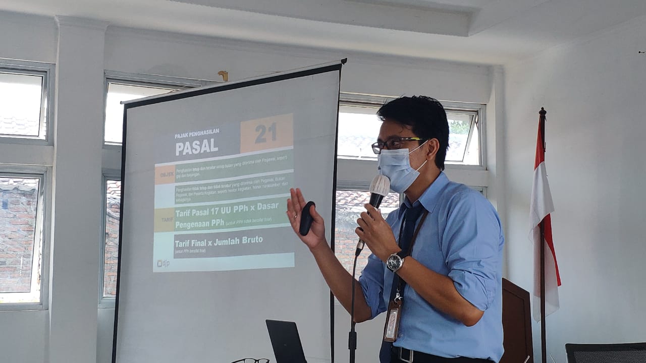 Penyuluh KPP Pratama Karawang Utara Kukuh Wahyu Nugroho, menjelaskan secara lengkap kewajiban perpajakan untuk Bendahara Pemerintah mulai dari PPh Pasal 21, 22, 23, 4 (2), PPN hingga Bea Meterai. Kukuh juga menjelaskan tata cara penyetoran dan pelaporan pajaknya, serta menjelaskan aturan terkait Insentif Pajak di masa Pandemi Covid-19, seperti Peraturan Menteri Keuangan PMK 110/PMK.03/2020 dan PMK 143/PMK.03/2020.