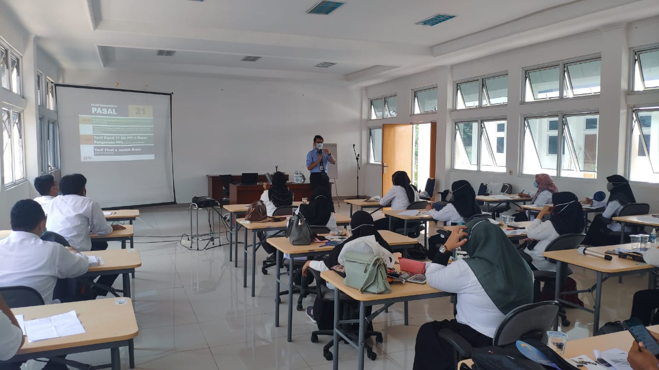 KPP Pratama Karawang Utara memberikan peyuluhan kewajiban perpajakan untuk Bendahara Pemerintah di wilayah Kabupaten Karawang (Rabu, 14/10). Kegiatan yang diprakarsai oleh BKPSDM Kabupaten Karawang, dilangsungkan di Kampus Balai Diklat BKPSDM dengan menerapkan protokol kesehatan, menggunakan masker, menjaga jarak, dan cuci tangan.