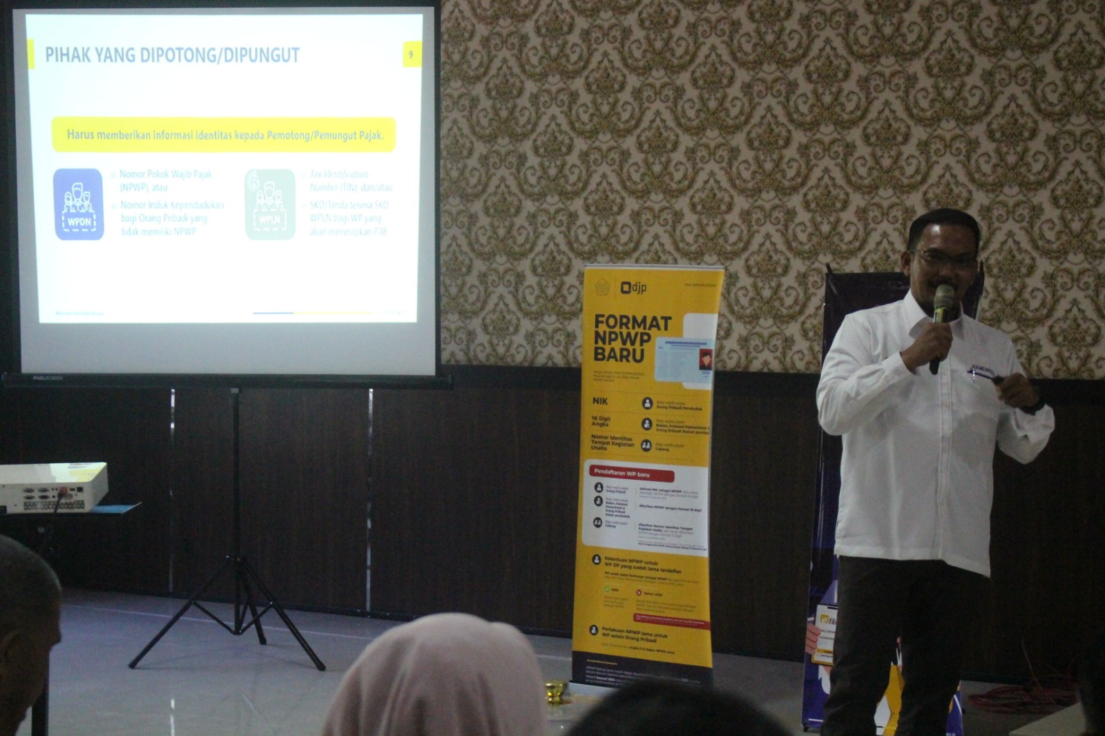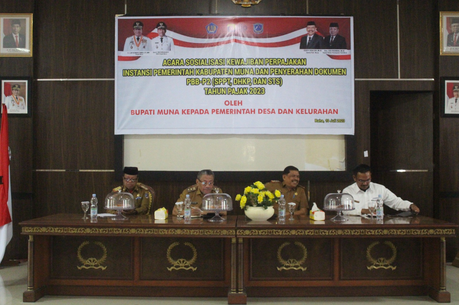 Kantor Pelayanan, Panyuluhan, dan Konsultasi Perpajakan (KP2KP) Raha bekerja sama dengan Pemerintah Kabupaten Muna menyelenggarakan kegiatan Sosialisasi Kewajiban Perpajakan Wajib Pajak Instansi Pemerintah Kabupaten Muna di Aula Kantor Bupati Muna, Kabupaten Muna, Sulawesi Tenggara (Senin, 10/7).