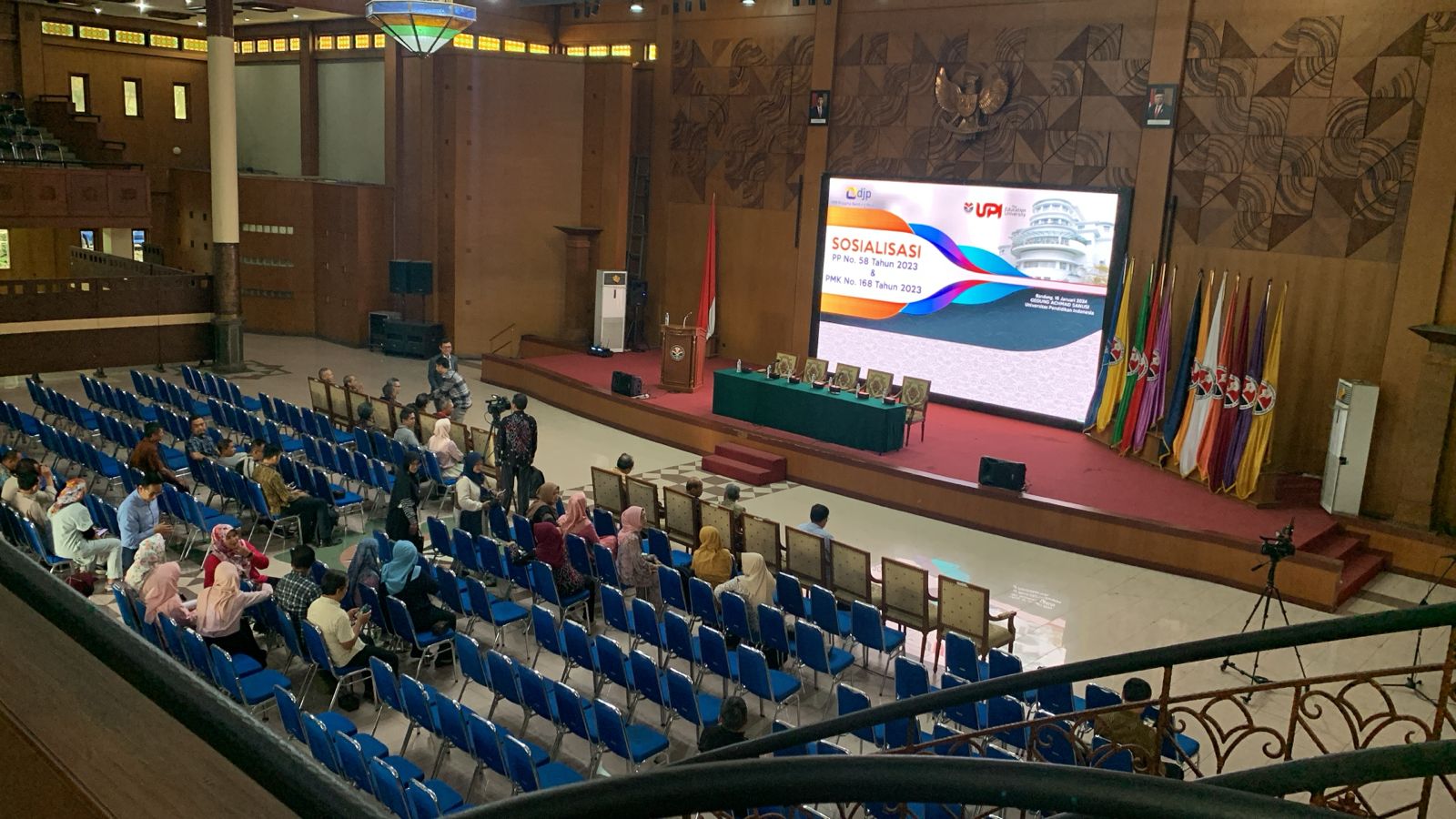 Berkolaborasi dengan Universitas Pendidikan Indonesia (UPI), Kantor Pelayanan Pajak (KPP) Pratama Bandung Bojonagar melakukan sosialisasi perhitungan Pajak Penghasilan (PPh) pasal 21 sesuai Peraturan Pemerintah (PP) 58 tahun 2023 dan PMK 168 tahun 2023 di di Gedung Achmad Sanusi UPI, Kecamatan Sukasari, Kota Bandung (Selasa, 16/1).