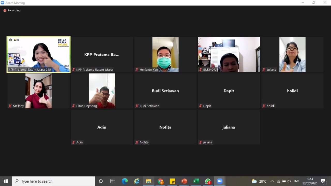 Kantor Pelayanan Pajak (KPP) Pratama Utara kembali menyelenggarakan Kelas Pajak mengenai Program Pengungkapan Sukarela (PPS) secara daring di Batam, Kepulauan Riau (Rabu, 23/2). Kelas Pajak ini diadakan secara rutin oleh KPP Pratama Batam Utara setiap hari Rabu sampai dengan tanggal 30 Juni 2022.