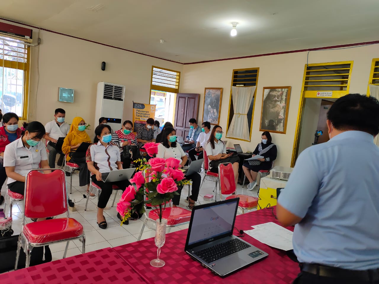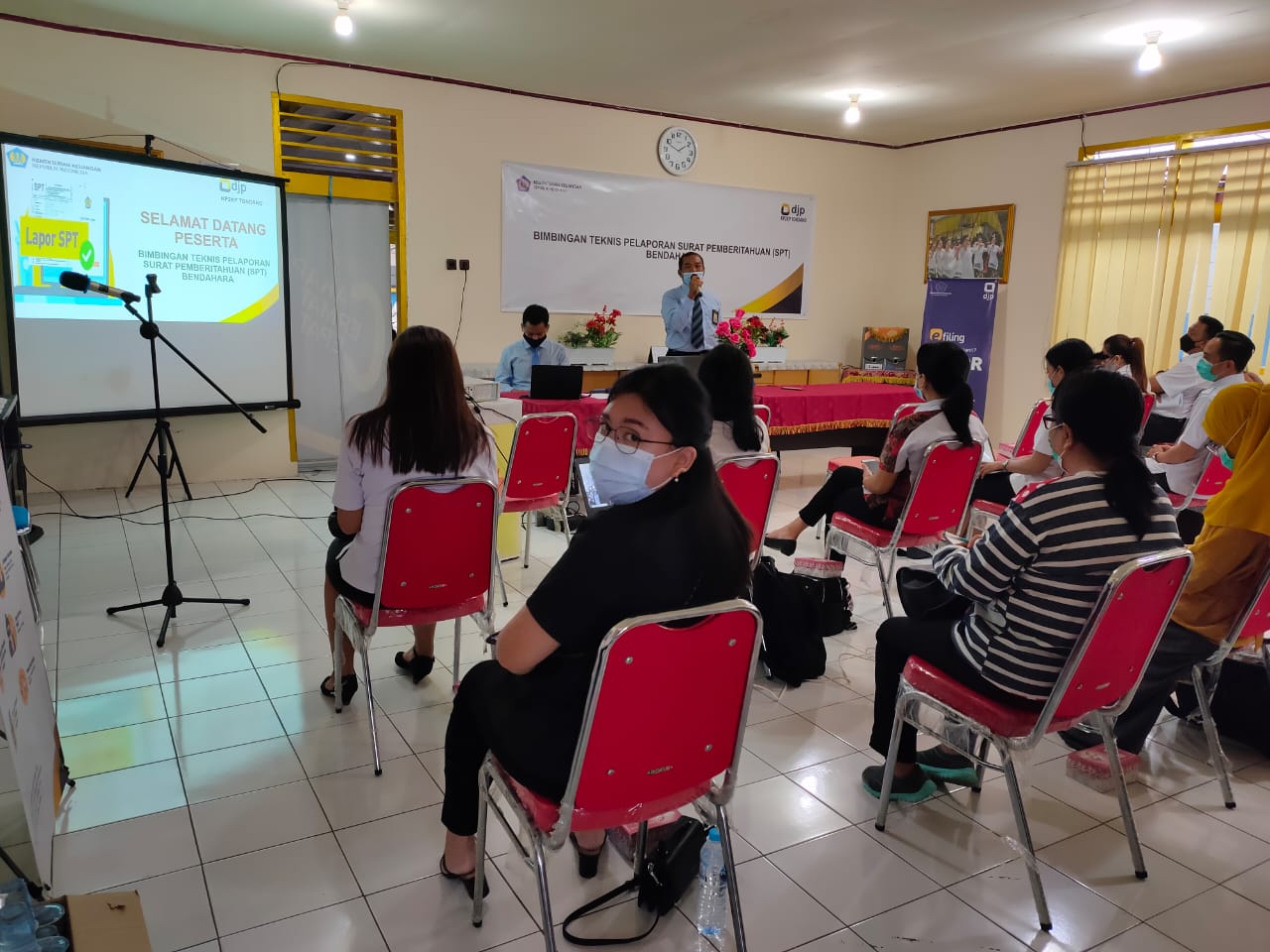 Bimbingan Teknis ini dihadiri oleh Seluruh Bendahara Puskesmas di Kabupaten Minahasa. Materi bimbingan yang dibawakan adalah SPT Tahunan dan Tata Cara Pelaporan SPT Tahunan melalui e-Filing, mulai dari cara memperoleh EFIN untuk mendaftarkan akun di DJP Online, Perbedaan Formulir 1770, 1770S, dan 1770SS, serta Informasi perpajakan lainnya terkait pelayanan apa saja yang dapat dilakukan secara tatap muka maupun daring.