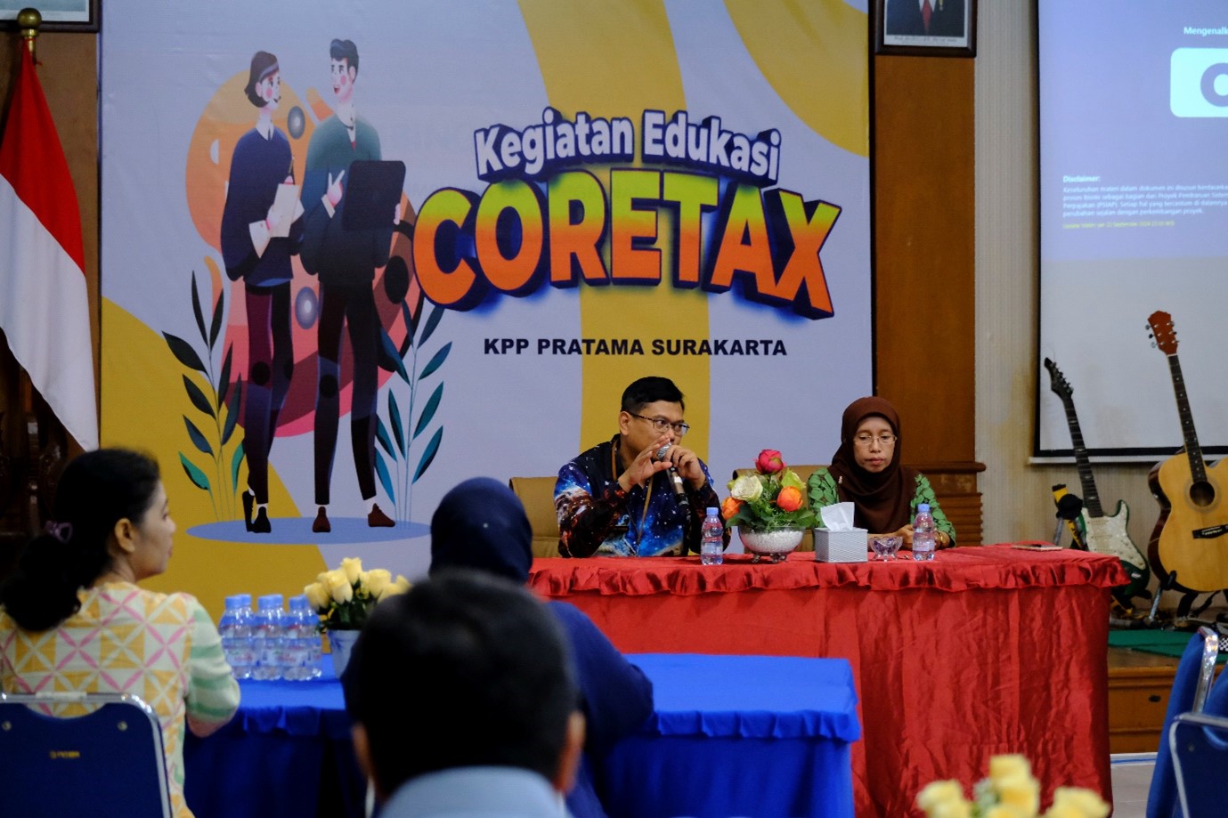 Acara edukasi dibuka dengan sambutan dari Kepala KPP Pratama Surakarta Herry Wirawan. “Coretax merupakan sistem administrasi layanan DJP yang memberikan kemudahan bagi wajib pajak dan fiskus. Coretax sangat diharapkan dapat memberikan kemudahan wajib pajak dalam memenuhi kewajiban perpajakannya,” ungkap Herry.