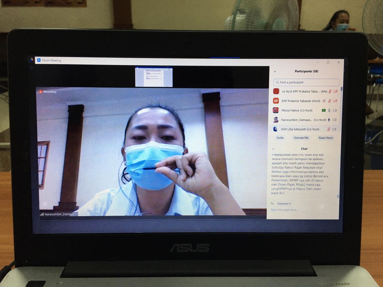 Kantor Pelayanan Pajak (KPP) Pratama Tabanan mengadakan kelas pajak secara daring melalui aplikasi zoom meeting di Aula KPP Pratama Tabanan langsung (Rabu,18/11).