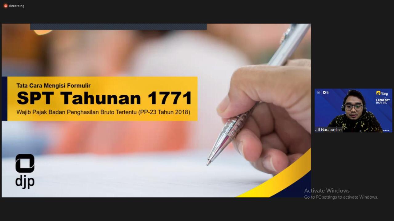 KPP Pratama Tangerang Barat kembali mengadakan kelas pajak bagi Wajib Pajak Badan dengan materi tata cara pengisian SPT Tahunan dan sosialisasi Peraturan Menteri Keuangan nomor : PMK-9/PMK.03/2021 tentang Insentif Pajak bagi Wajib Pajak Terdampak melalui aplikasi zoom cloud meeting dengan narasumber Account Representative KPP Pratama Tangerang Barat Dimas Prihandana Jati dan Yessica Lasmarit Aritonang (Selasa, 09/03).