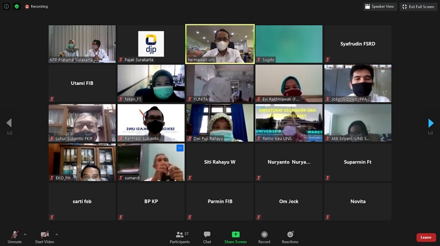 Kantor Pelayanan Pajak (KPP) Pratama Surakarta mengadakan kegiatan kelas pajak kepada para pegawai Universitas Sebelas Maret (UNS) dalam jaringan (daring) melalui Zoom Cloud Meeting di KPP Pratama Surakarta (Senin, 8/2).