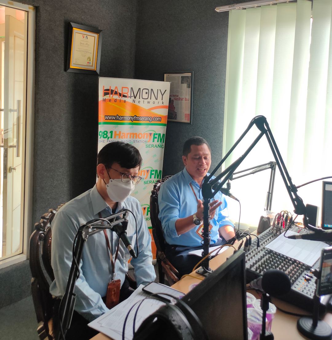 Kantor Pelayanan Pajak (KPP) Pratama Cilegon menyelenggarakan kegiatan Talkshow Sosialisasi Program Pengungkapan Sukarela (PPS) dengan narasumber Tim Fungsional Penyuluh Pajak KPP Pratama Cilegon Mawan Triantana dan Anton Susilo di Radio Harmony FM Serang, Kota Serang (Rabu, 22/6).