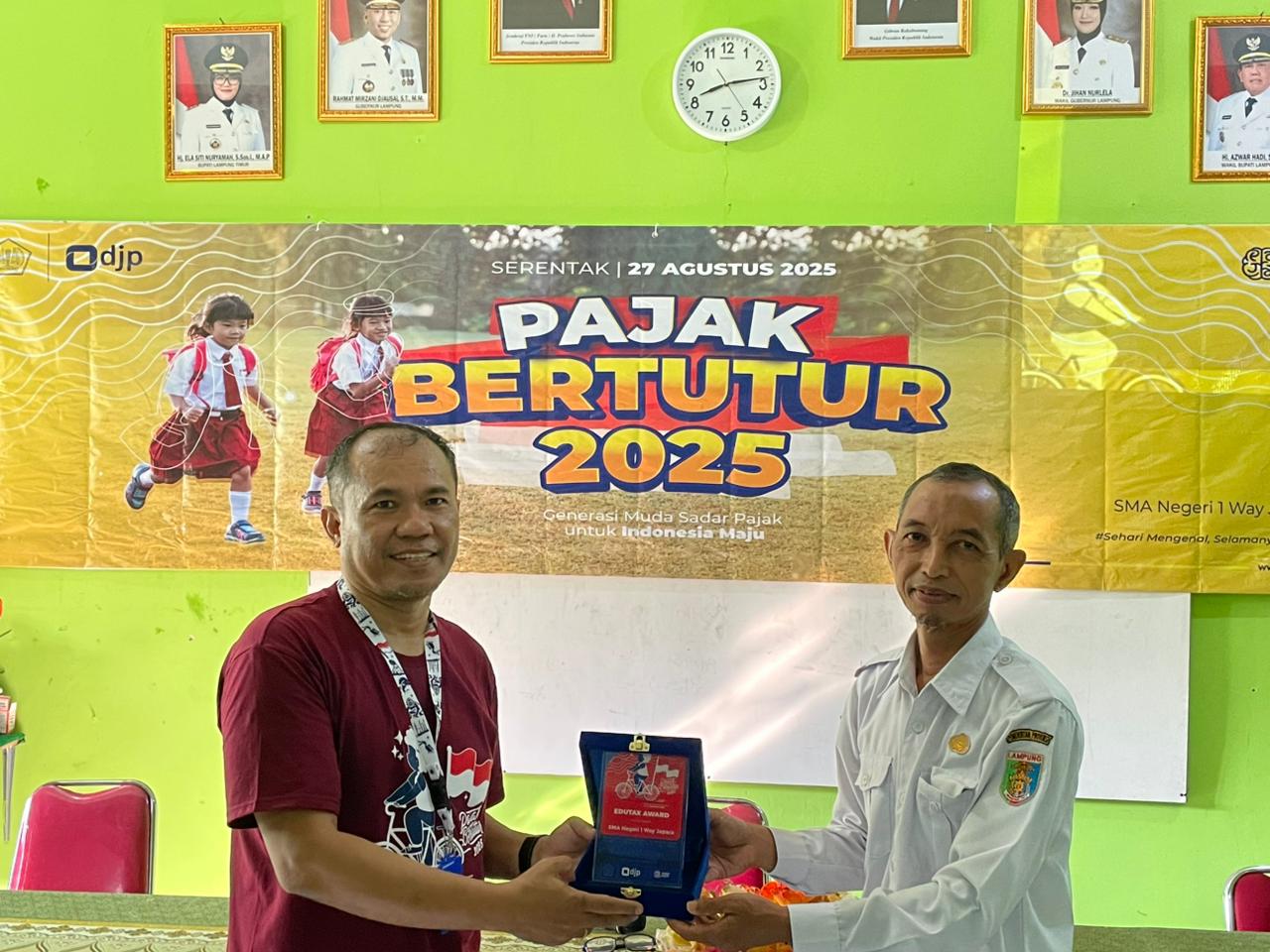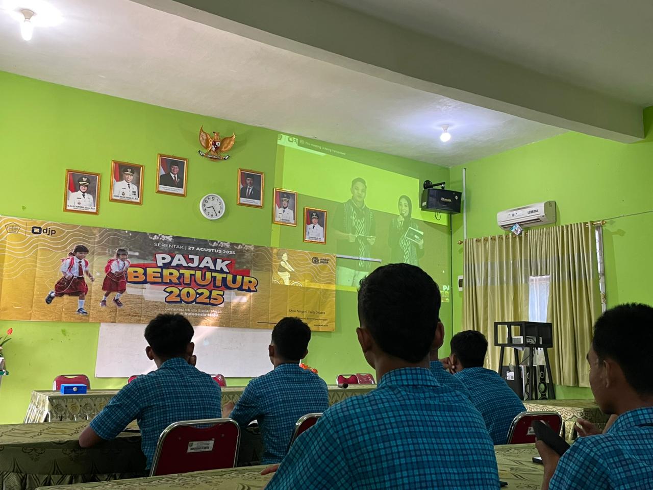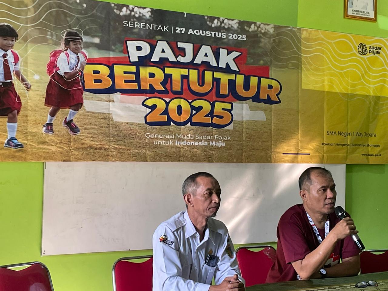 Kantor Pelayanan, Penyuluhan, dan Konsultasi Perpajakan (KP2KP) Sukadana melaksanakan kegiatan Pajak Bertutur 2025 di Sekolah Menegah Atas (SMA) Negeri 1 Way Jepara, Lampung Timur, Lampung (Rabu, 27/8). Kegiatan ini mengusung tema Generasi Muda Sadar Pajak untuk Indonesia Maju. Acara dibuka langsung oleh Kepala KP2KP Sukadana, Nelson Manurung.
