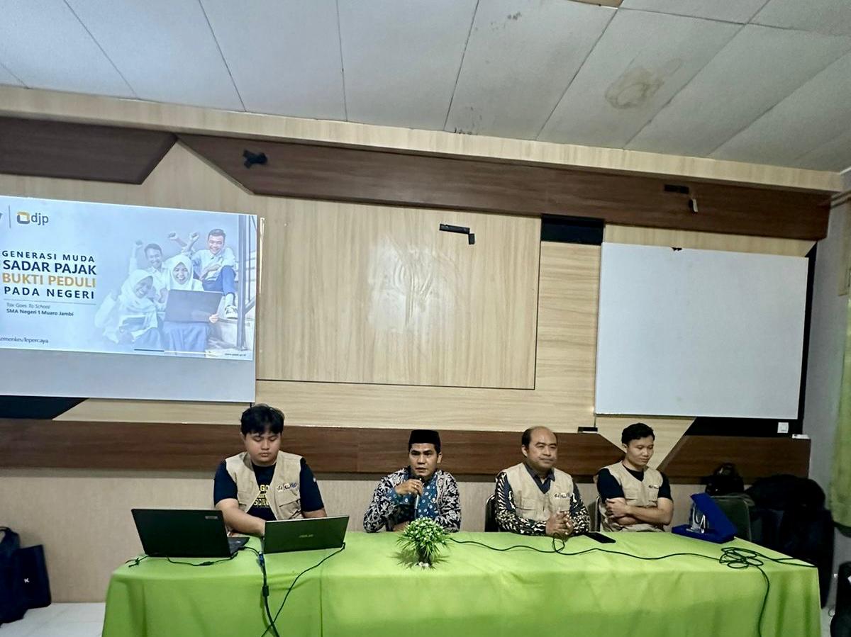 Kantor Pelayanan, Penyuluhan, dan Konsultasi Perpajakan (KP2KP) Sengeti menyelenggarakan kegiatan Tax Goes to School (TGTS) 2024 secara langsung (luring) di SMA Negeri 1 Muaro Jambi Kabupaten Muaro Jambi (Rabu, 24/7). Kegiatan kali ini mengambil tema "Generasi Muda Sadar Pajak, Wujud Bela Negara".
