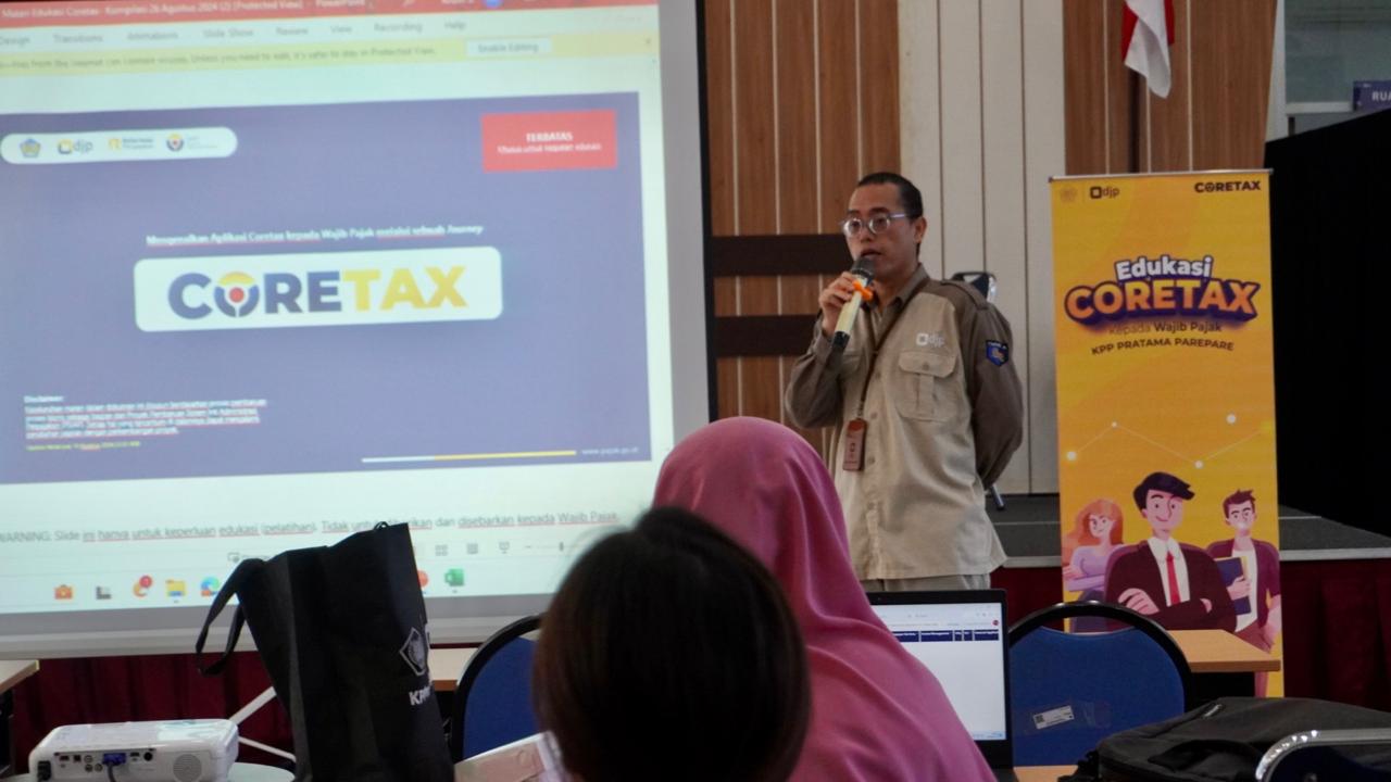 Kantor Pelayanan, Penyuluhan, dan Konsultasi Perpajakan (KP2KP) Sidrap hadiri kegiatan edukasi Coretax kepada wajib pajak di Ruang Aula Kantor Pelayanan Pajak (KPP) Pratama Parepare (Kamis, 29/8).