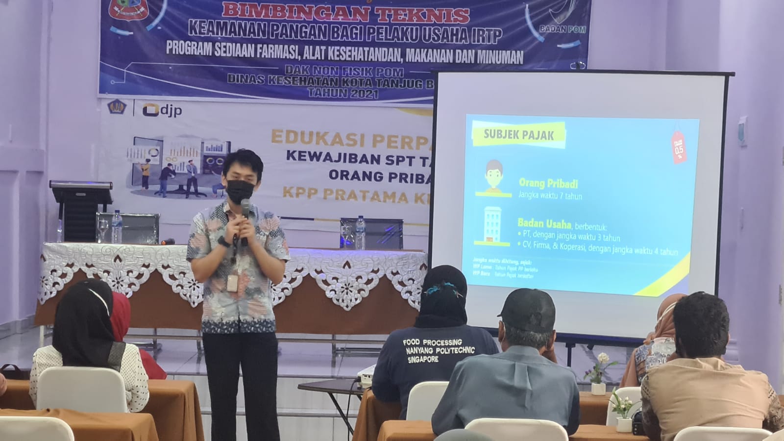 Dinas Kesehatan Kota Tanjung Balai menggelar kegiatan sosialisasi Bimbingan Teknis Keamanan Pangan Bagi Pelaku Usaha Industri Rumah Tangga Pangan (IRTP) hari kedua. Pada Kegiatan tersebut, Dinas Kesehatan mengundang Kantor Pelayanan, Penyuluhan, dan Konsultasi Perpajakan (KP2KP) Tanjung Balai dan Kantor Pelayanan Pajak (KPP) Pratama Kisaran sebagai Narasumber dalam penyampaian materi edukasi terkait dengan alur pendaftaran Nomor Pokok Wajib Pajak (NPWP) untuk usaha IRTP, Proses pembayaran pajak, dan jenis usaha pemegang yang wajib memiliki NPWP.yang diselenggarakan di Aula Resto Bahagia, Kota Tanjung Balai, Sumatera Utara (Jumat, 15/10).