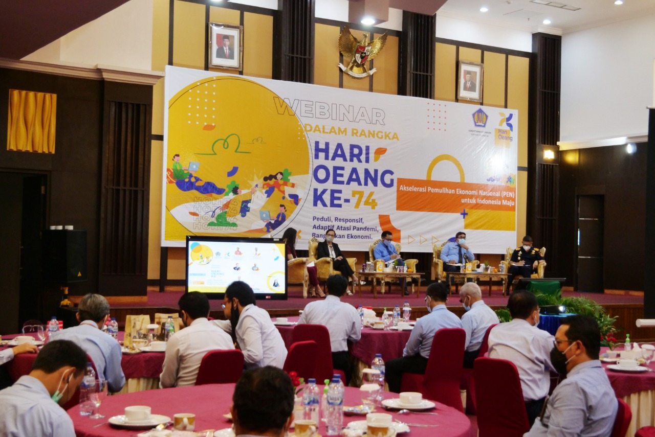 Kepala Kantor Wilayah (Kakanwil) Direktorat Jenderal Pajak (DJP) Sulawesi Utara, Tengah, Gorontalo, dan Maluku Utara (Suluttenggomalut) Tri Bowo menjadi salah satu pembicara dalam webinar bertema Akselerasi Pemulihan Ekonomi Nasional (PEN) untuk Indonesia Maju di Aula Lantai 6 Gedung Keuangan Negara (GKN) Manado (Rabu, 21/10).