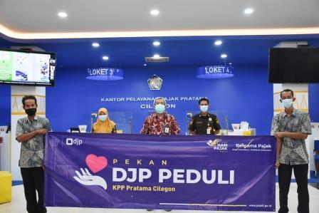 Kantor Pelayanan Pajak (KPP) Pratama Cilegon kembali mengadakan bakti sosial Pekan DJP Peduli dengan menggalang bantuan atas terjadinya musibah bencana alam dan pandemi Covid-19 di lobi kantor KPP Pratama Cilegon, Kota Cilegon (Jumat, 9/7).