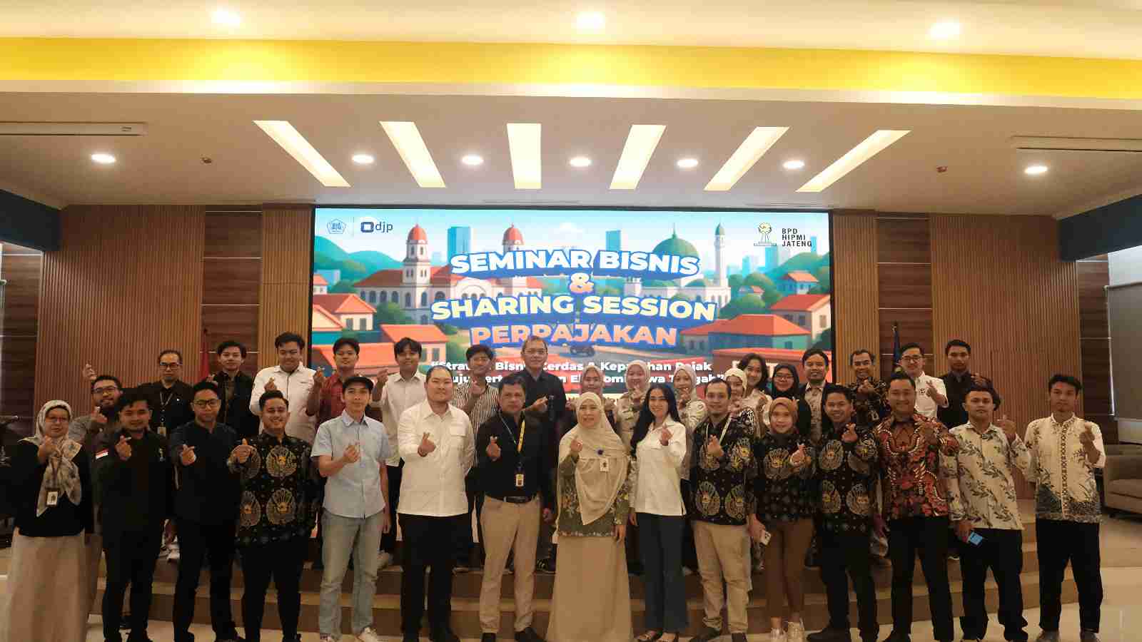 Badan Perwakilan Daerah (BPD) Himpunan Pengusaha Muda Indonesia (HIPMI) Jawa Tengah bersama Kantor Wilayah (Kanwil) DJP Jawa Tengah I menggelar seminar bisnis dan sharing session perpajakan di Aula Lantai 7 Gedung Keuangan Negara II, Kota Semarang (Kamis, 14/8).