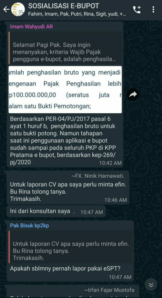Kegiatan yang bertujuan untuk membimbing dan memberi edukasi perpajakan perihal e-Bupot 23/26 bagi wajib pajak di tengah pandemi Covid-19 ini disambut baik oleh wajib pajak yang tidak dapat mengikuti kegiatan serupa lewat Zoom Meeting beberapa hari lalu.