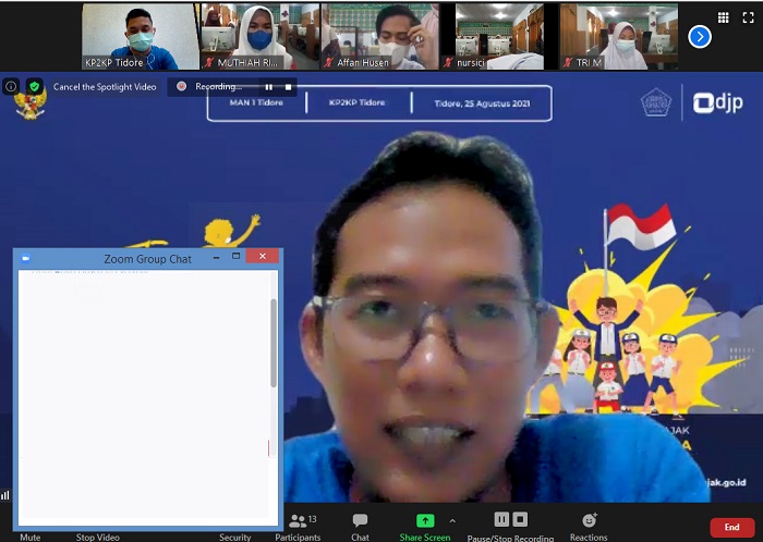 Kantor Pelayanan, Penyuluhan, dan Konsutlasi Perpajakan (KP2KP) Tidore bersama Madrasah Aliyah Negeri (MAN) 1 Tidore mengadakan kegiatan Pajak Bertutur 2021 sekaligus mengampanyekan Program Inklusi Kesadaran Pajak dalam dunia pendidikan secara dari di kota Tidore Kepulauan (Rabu, 25/8). Para peserta yang hadir dalam kegiatan ini sebanyak 30 siswa-siswi MAN 1 Tidore.