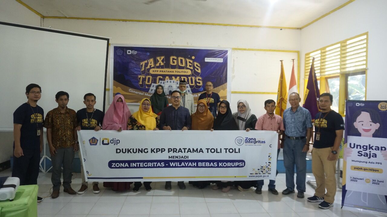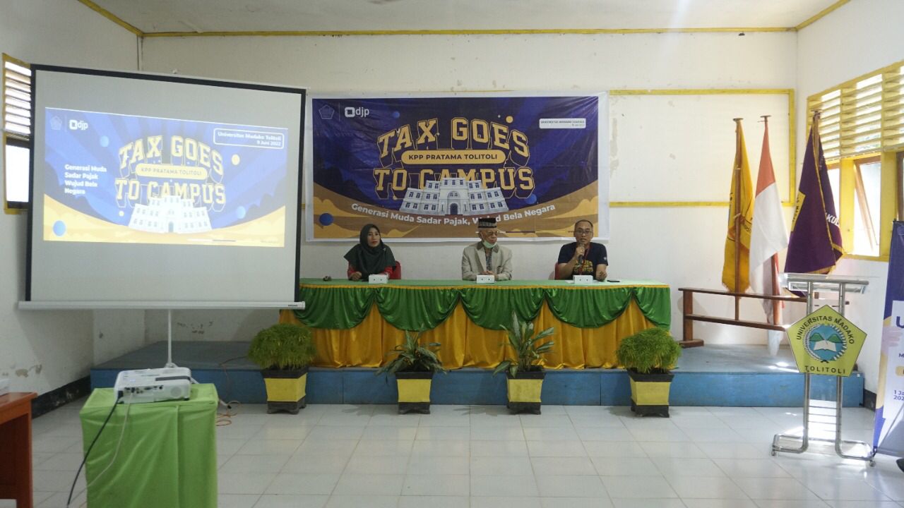 Kantor Pelayanan Pajak (KPP) Pratama Tolitoli menyelenggarakan Tax Goes to Campus (TGTC) di Kampus Universitas Madako Tolitoli (Kamis, 9/6). Kegiatan ini diadakan di Kampus Universtias Madako yang beralamatkan di Jl. Madako No. 1, Kelurahan Baru, Kecamatan Baolan, Kabupaten Tolitoli.