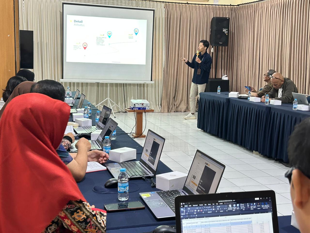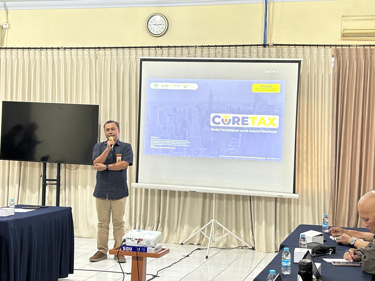 Penyuluh Pajak KPP Pratama Temanggung, Mangaraja Marah Husin dan Riesnanda Saptono Putro, secara bergantian memaparkan materi terkait cara penggunaan aplikasi Coretax DJP kepada 20 orang pegawai perwakilan dari Dinpermandes dan 5 orang pegawai perwakilan dari BPR BKK Kabupaten Temanggung.