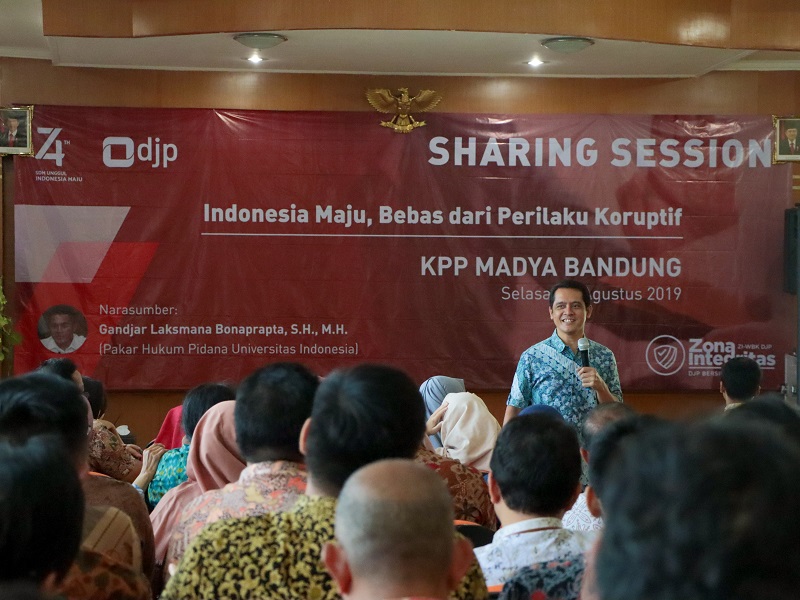 KPP Madya Bandung menghadirkan Pakar Hukum Pidana dari Universitas Indonesia (UI) Gandjar Laksmana Bonaprapta, S.H., M.H. untuk menjadi narasumber dalam acara Sharing Session yang bertajuk ‘Indonesia Maju, Bebas dari Perilaku Korupsi’ di Aula KPP Madya Bandung (Selasa, 20/8).