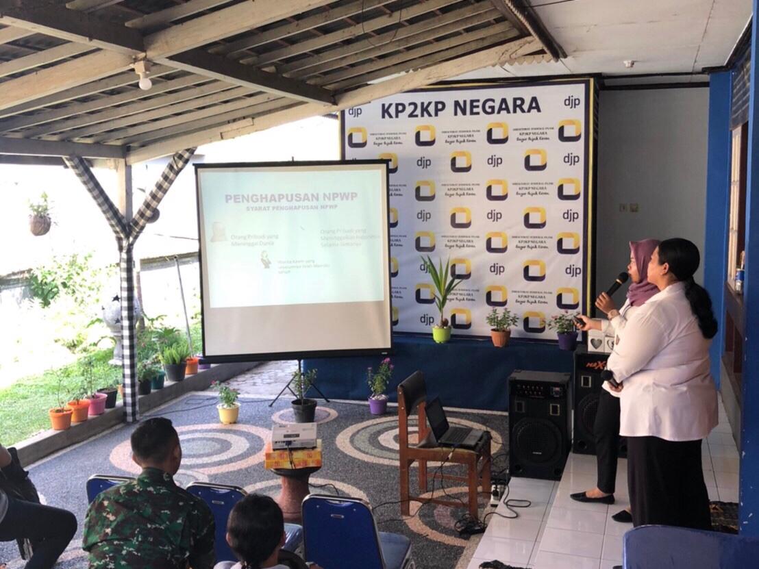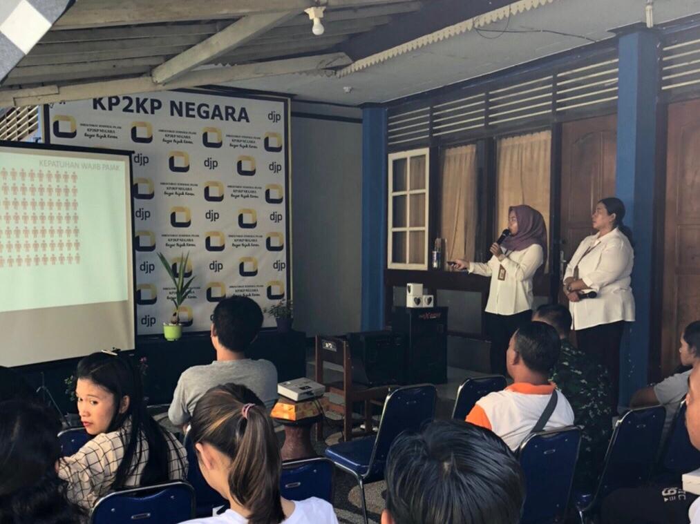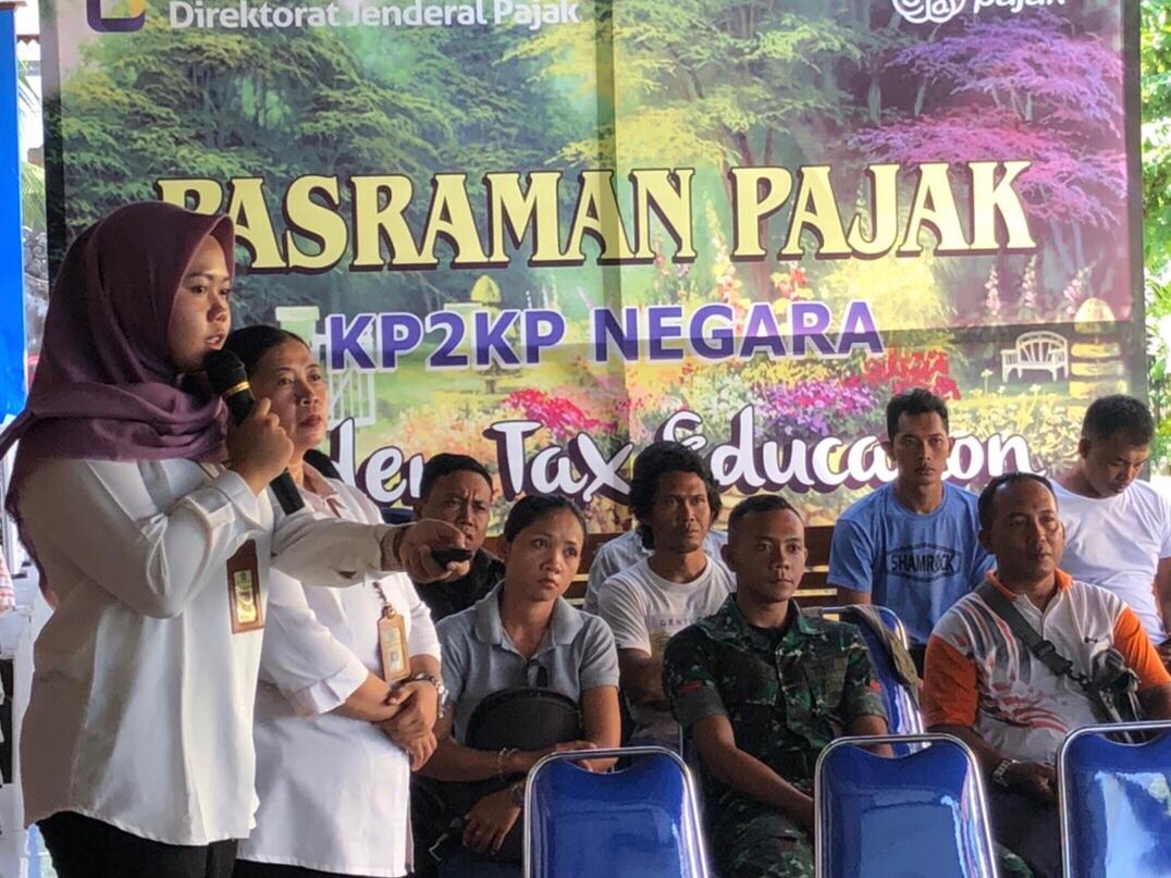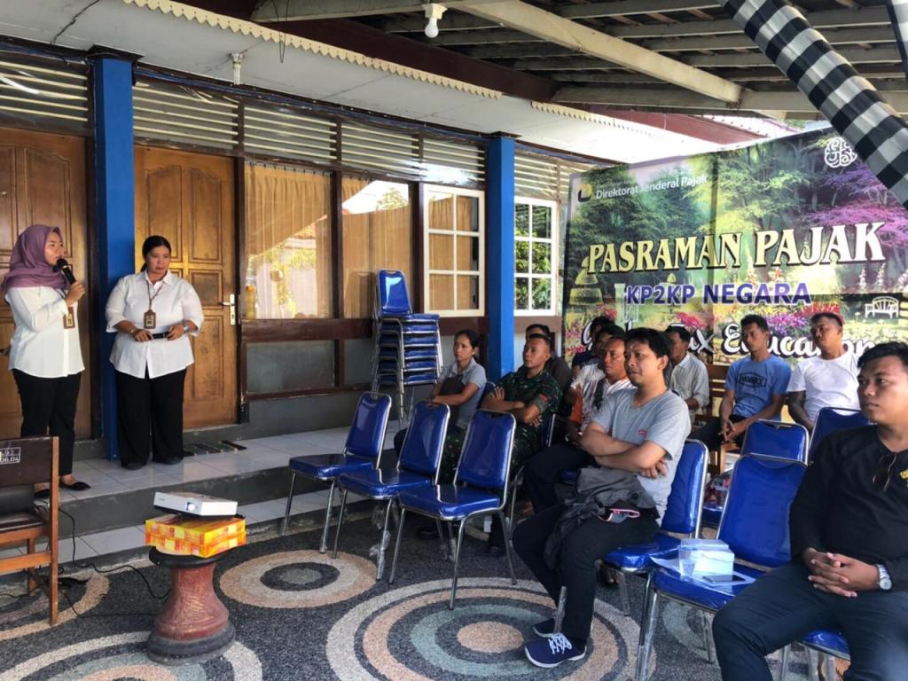 Kantor Pelayanan, Penyuluhan dan Konsultasi Perpajakan Negara kembali menggelar acara edukasi pajak kepada wajib pajak orang pribadi baru di Kabupaten Jembrana (Senin, 25/11). Sebanyak 17 wajib pajak baru tampak hadir pada acara edukasi yang dilaksanakan di taman belakang KP2KP Negara.