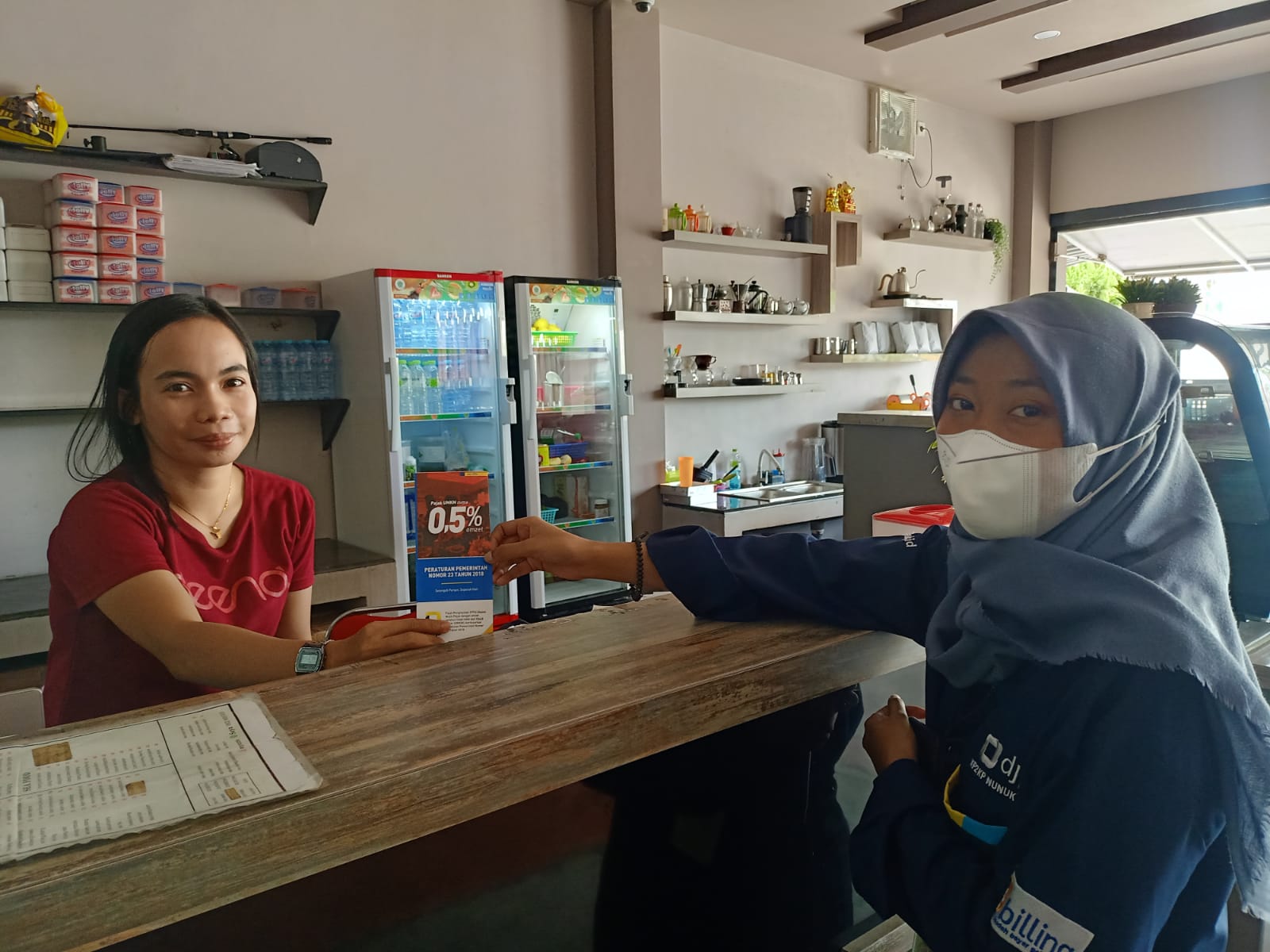 Selain mengingatkan kewajiban pelaporan SPT, Pajak Nunukan juga membagikan brosur Peraturan Pemerintah Nomor 23 Tahun 2018 tentang Pajak Final Usaha Kecil Mikro dan Menengah (UMKM) sekaligus menjelaskan peraturan pajak terbaru, Undang-undang Nomor 7 Tahun 2021 tentang Harmonisasi Peraturan Perpajakan (UU HPP)