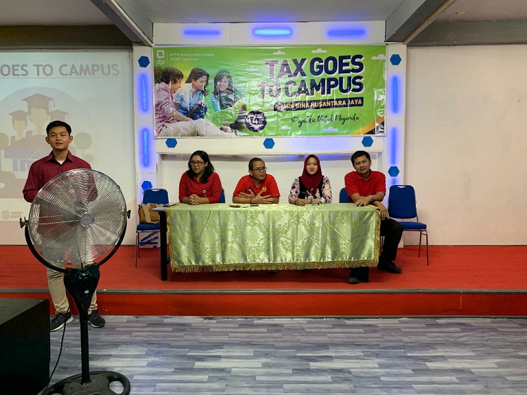 Kepala Seksi Ekstensifikasi dan Penyuluhan Budhi Suryanto membuka acara dan dilanjutkan oleh Pembantu Ketua III Bagian Kemahasiswaan Binus Jaya Veradilla Amalia.