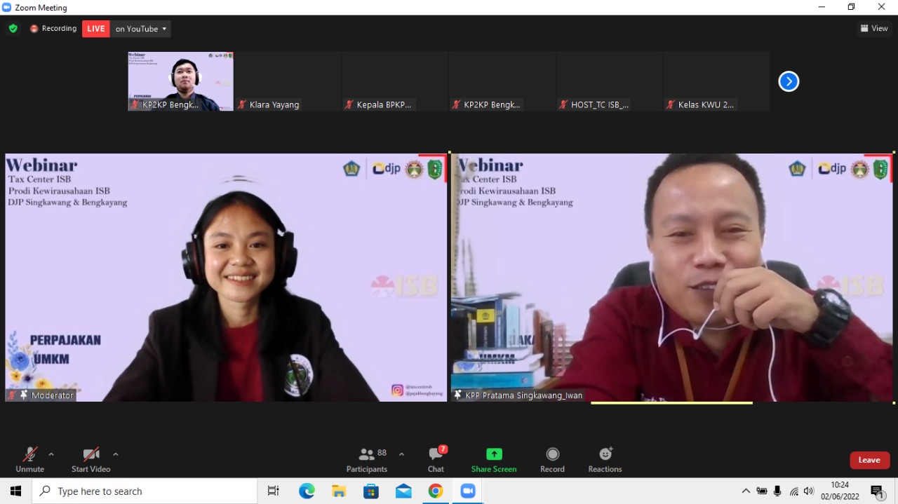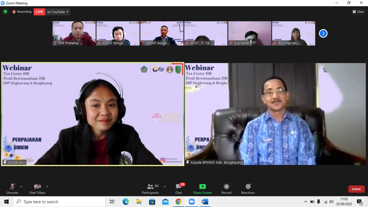 Mengingat pentingnya Usaha Mikro, Kecil, dan Menengah (UMKM) sebagai penyokong terbesar Peredaran Domestik Bruto (PDB) Indonesia, Tax Center Institut Shanti Bhuana dan Kantor Pelayanan, Penyuluhan, dan Konsultasi Perpajakan (KP2KP) Bengkayang mengadakan webinar (seminar web) kewirausahaan dengan tema “Perpajakan UMKM” (Kamis, 2/6). Acara ini dihadiri oleh sejumlah pelaku UMKM dan mahasiswa jurusan kewirausahaan dari Institut Shanti Bhuana.