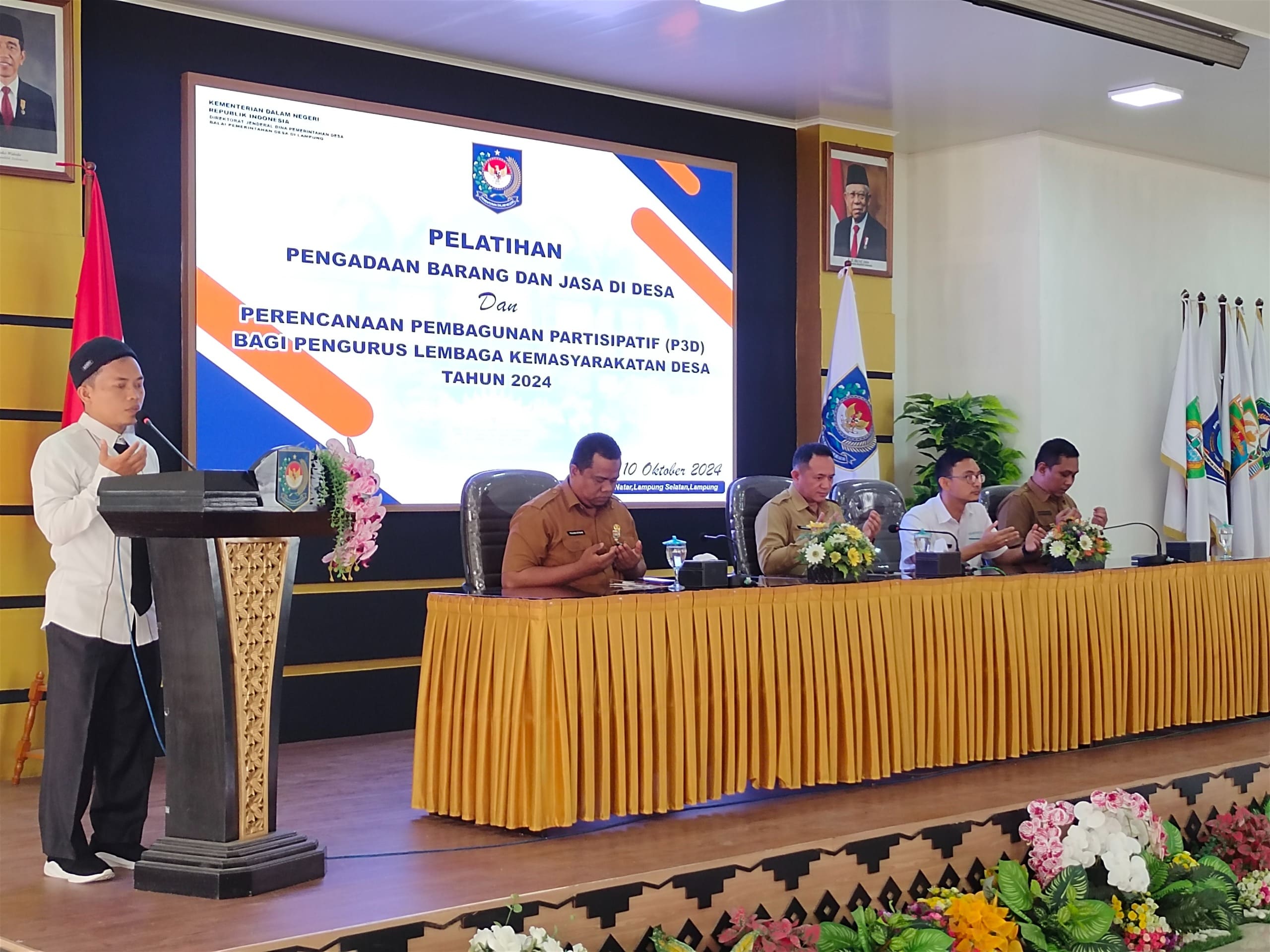 Kantor Pelayanan Pajak (KPP) Pratama Natar untuk menjadi narasumber dalam acara Pelatihan Pengadaan Barang dan Jasa yang diselenggarakan oleh Balai Pemerintah Desa Lampung bertempat di Desa dan Perencanaan Pembangunan Partisipatif (P3D) Bagi Pengurus Lembaga Kemasyarakatan Desa (LKD) Tahun 2024 yang berlokasi di Aula Balai Pemerintahan Desa (Pemdes) Lampung, Jalan Trans Sumatera KM 25, Candimas, Natar, Lampung Selatan, Lampung (Senin, 14/10).