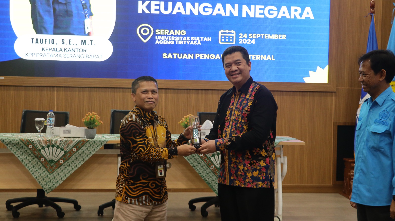 Kegiatan ini menghadirkan narasumber dari Kepala Kantor Pelayanan Pajak (KPP) Pratama Serang Barat Taufiq dan Fungsional Penyuluh Pajak Slamet Riyanto. Taufiq, dalam paparannya, menyampaikan pentingnya memahami regulasi perpajakan bagi perguruan tinggi negeri, khususnya yang berstatus Badan Layanan Umum (BLU).