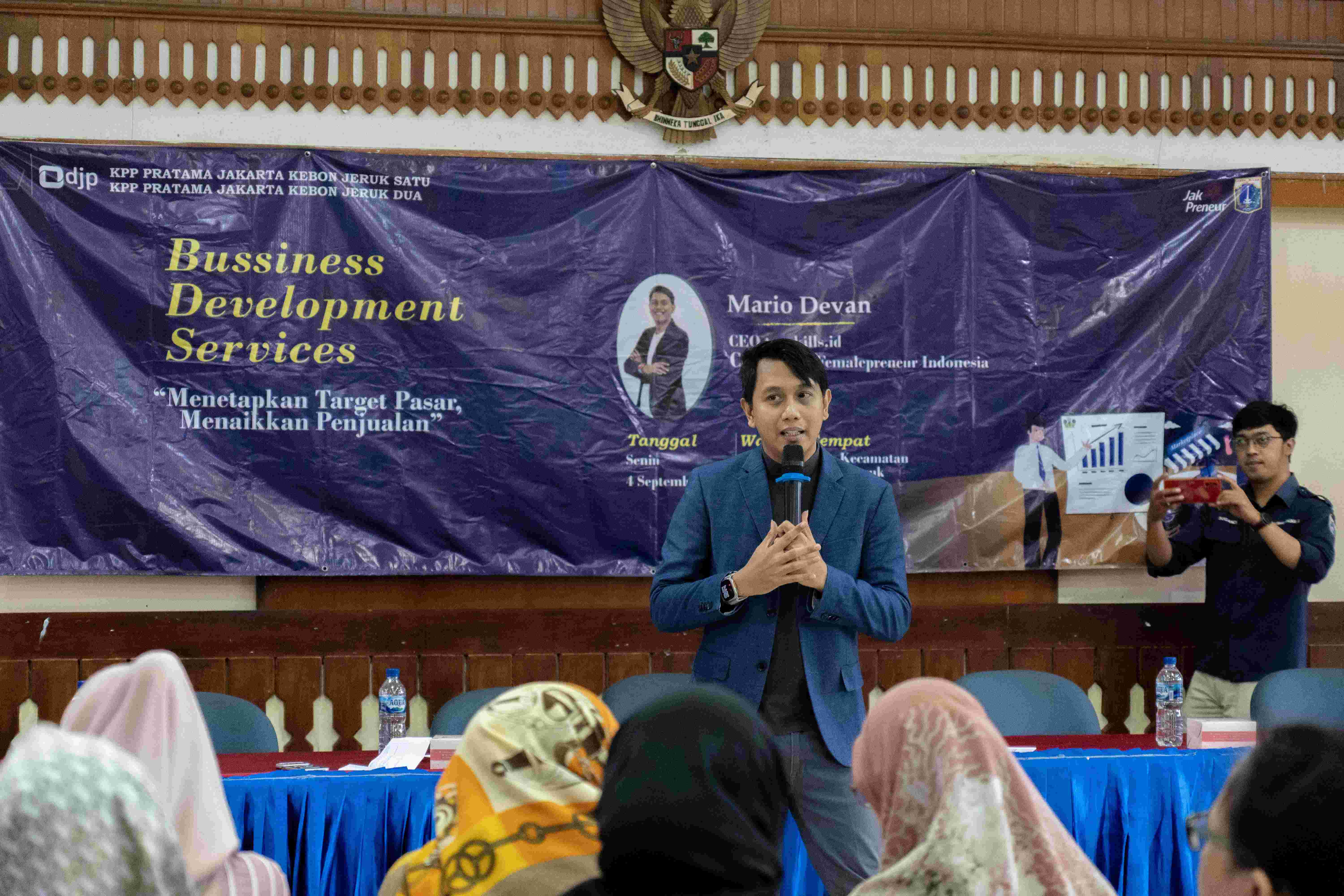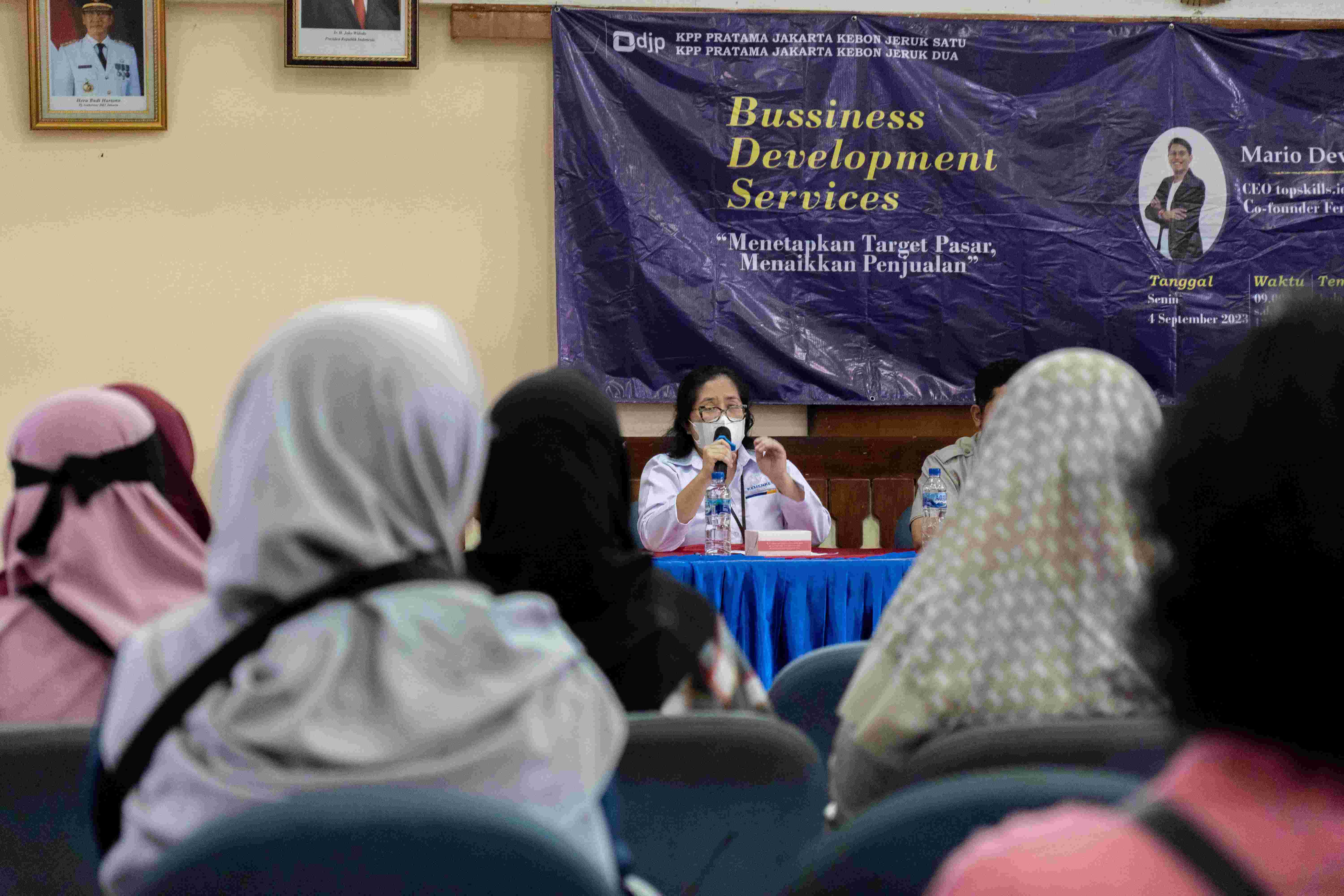 Kantor Pelayanan Pajak (KPP) Pratama Jakarta Kebon Jeruk Dua menggelar kegiatan Business Development Services (BDS) bekerja sama dengan KPP Pratama Jakarta Kebon Jeruk Satu dan Suku Dinas Perindustrian, Perdagangan, Koperasi, Usaha Kecil dan Menengah (PPKUKM) Jakarta Barat di Aula Kecamatan Kebon Jeruk (Senin, 4/9).