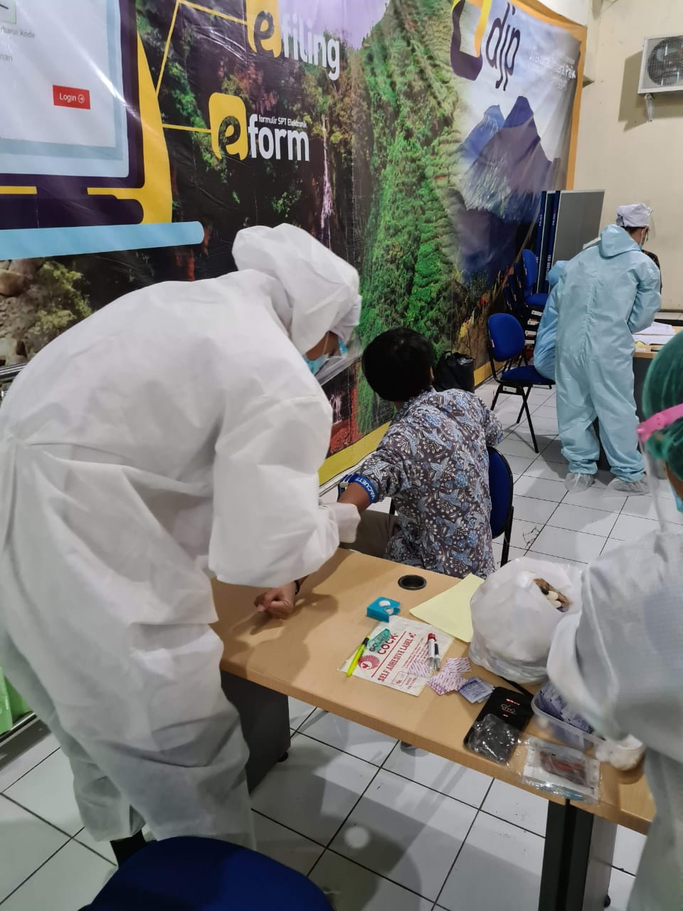 Dalam rangka pencegahan penularan Covid-19, KPP Pratama Temanggung bekerja sama dengan Prodia Temanggung menyelenggarakan rapid test kepada seluruh pegawai. Sebanyak 143 pegawai yang terdiri dari 126 ASN dan 17 Non ASN telah mengikuti rapid test pada 4 dan 5 Agustus 2020.