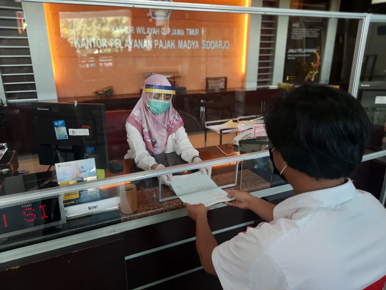 Dalam memberikan pelayanan, para petugas telah menerapkan protokol kesehatan seperti tidak berjabat tangan, melakukan pengecekan suhu, menjaga jarak, dan menggunakan masker, sarung tangan, serta face shield. Selain itu, ruang tunggu juga telah diatur untuk menjaga jarak aman dengan orang lain (physical distancing). Meja TPT juga dilengkapi dengan kaca untuk mendukung hal tersebut. Di hari pertama pembukaan layanan tatap muka, belum banyak wajib pajak yang datang ke KPP Madya Sidoarjo.