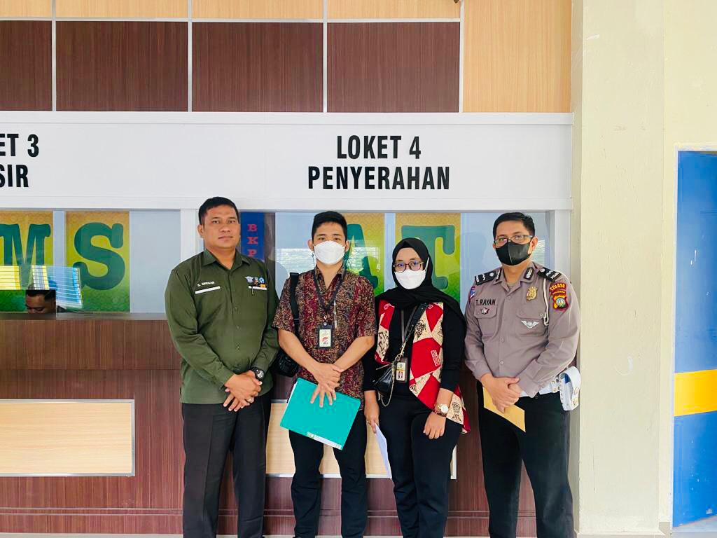 Kantor Pelayanan Pajak Pratama Tanjung Balai Karimun (KPP TBK) melalui Juru Sita Pajak Negara (JSPN) Galfonso Siahaan dan tim dari Seksi Pemeriksaan, Penilaian, dan Penagihan melakukan kunjungan kerja dalam rangka koordinasi terkait kepemilikan aset wajib pajak berupa kendaraan bermotor ke Sistem Administrasi Manunggal Satu Atap (Samsat) Karimun di Poros, Kabupaten Karimun, Kepulauan Riau (Jumat, 5/8).